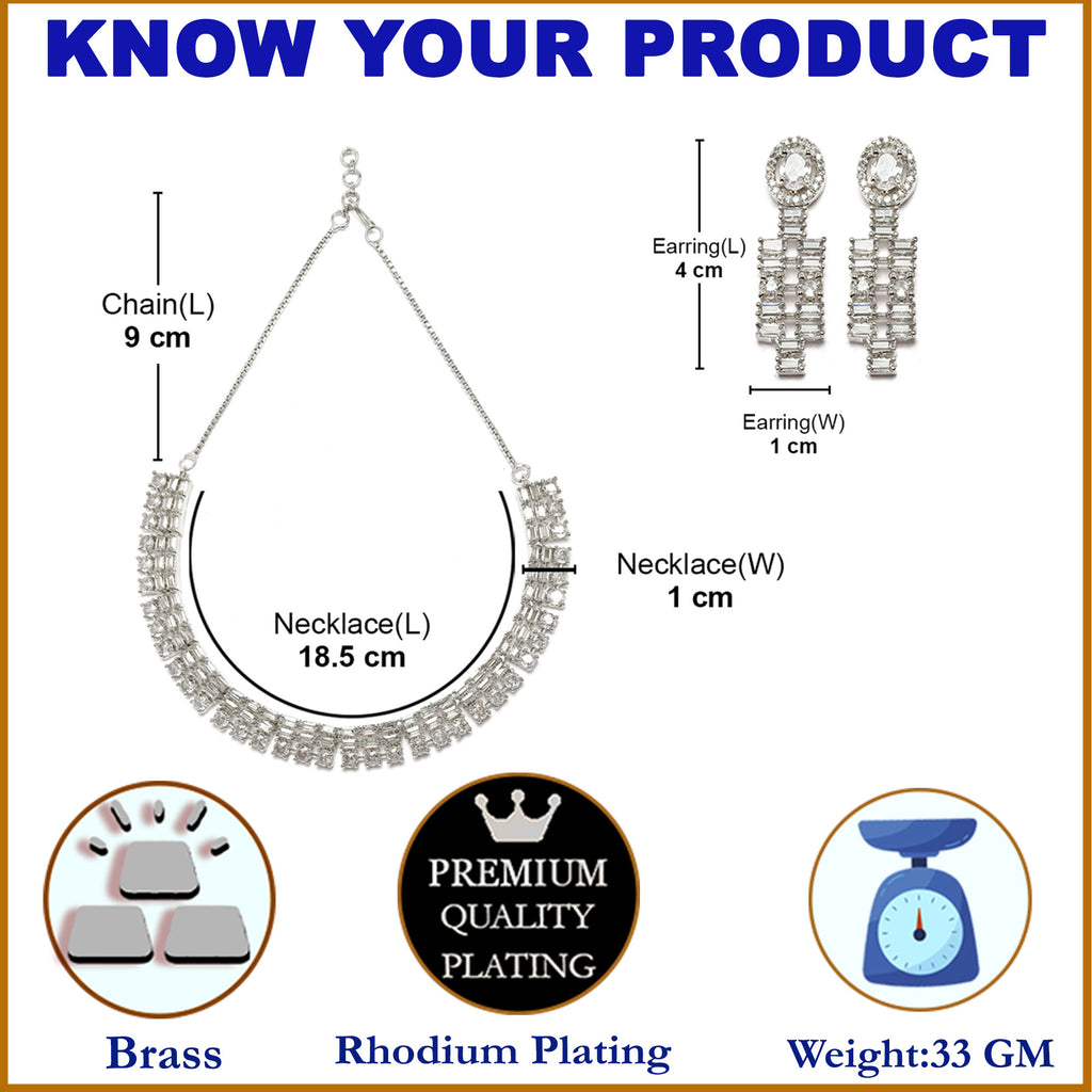 Rhodium-Plated White Round Shape American Diamonds Studded Necklace & Earrings Jewellery Set