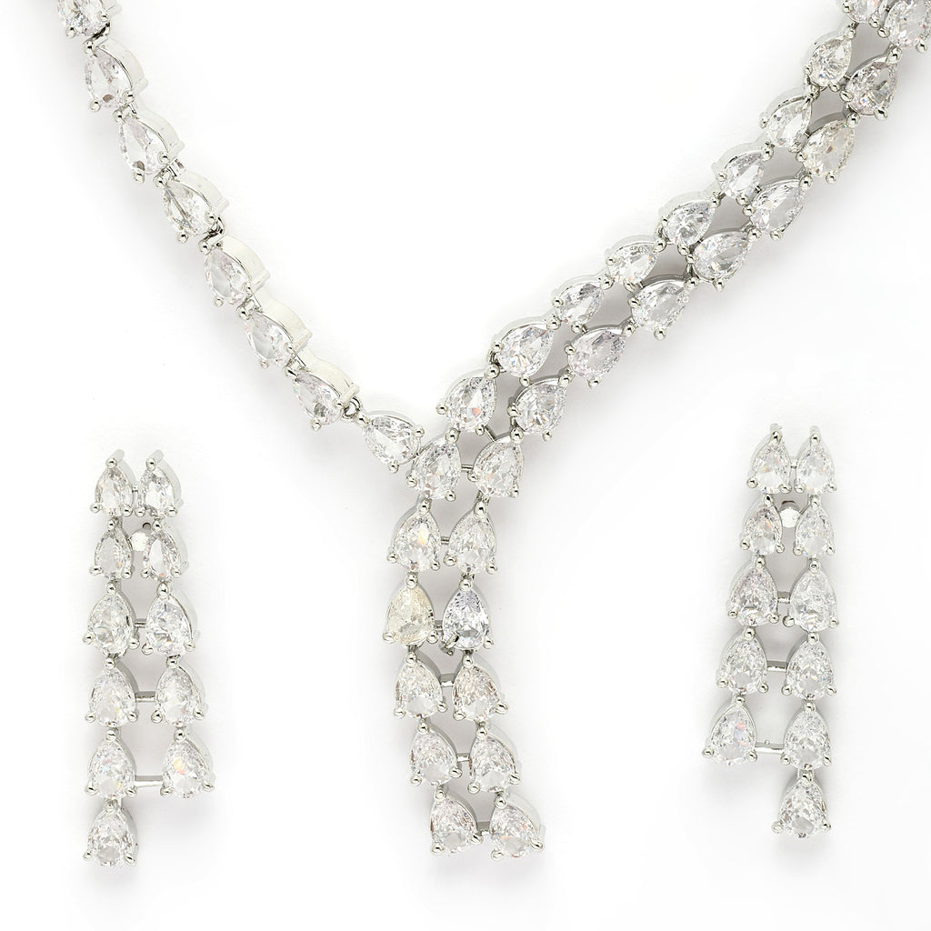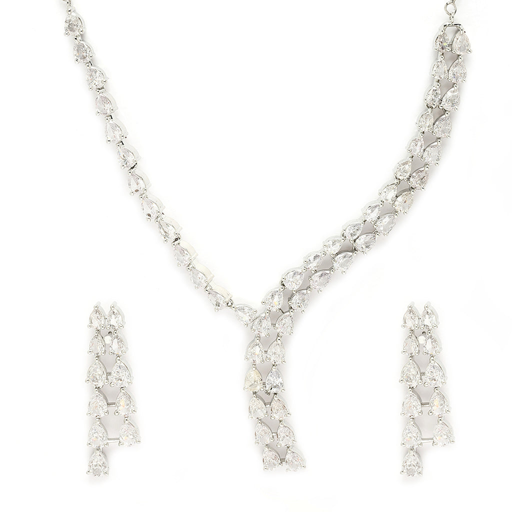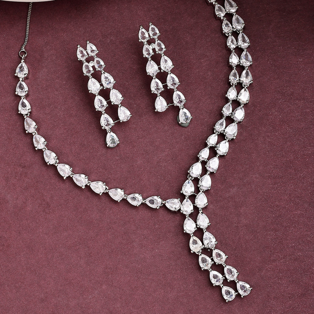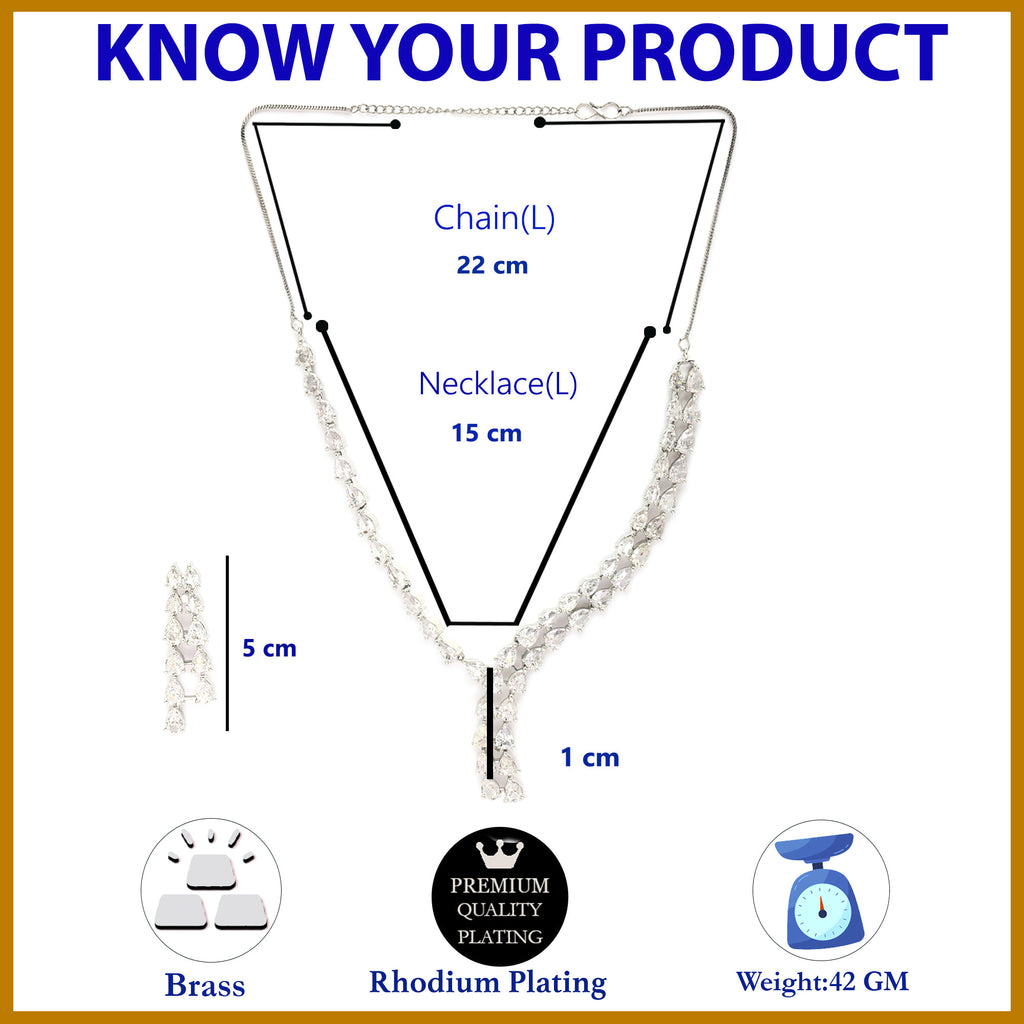 Elegant Karatbee Solitaire Design: This stunning necklace set features a sparkling solitaire design, beautifully rhodium-plated, and adorned with white AD stones that shine brilliantly.