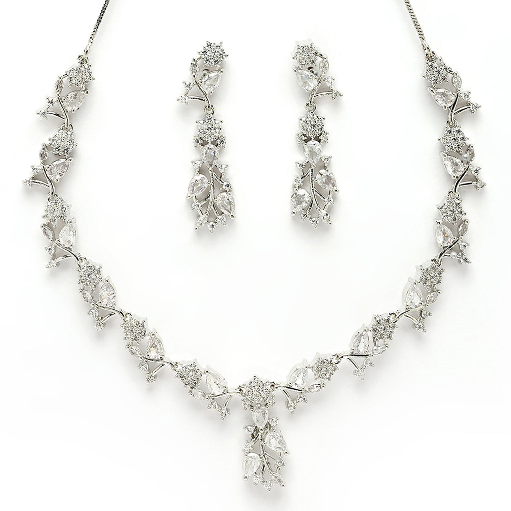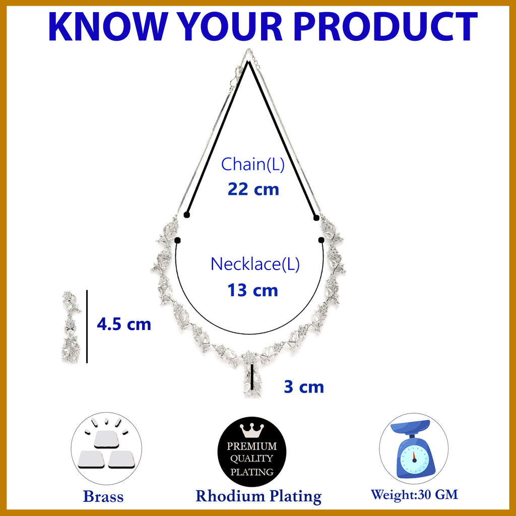 Leaf Drop Design: This elegant rhodium-plated necklace set features a beautiful leaf drop design, exuding nature-inspired sophistication and charm.