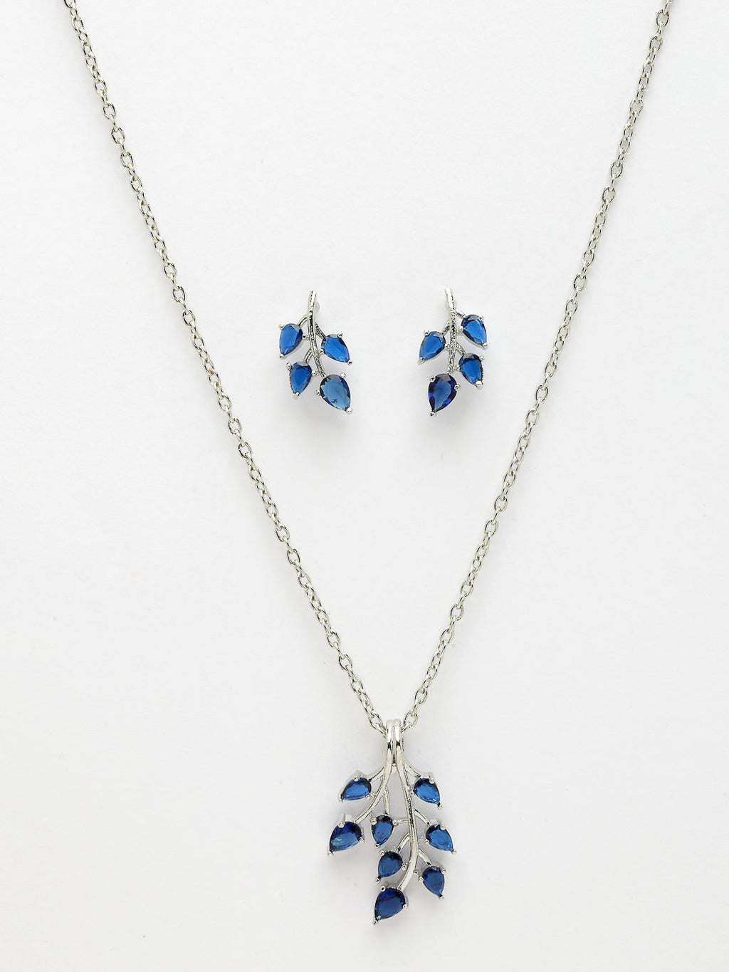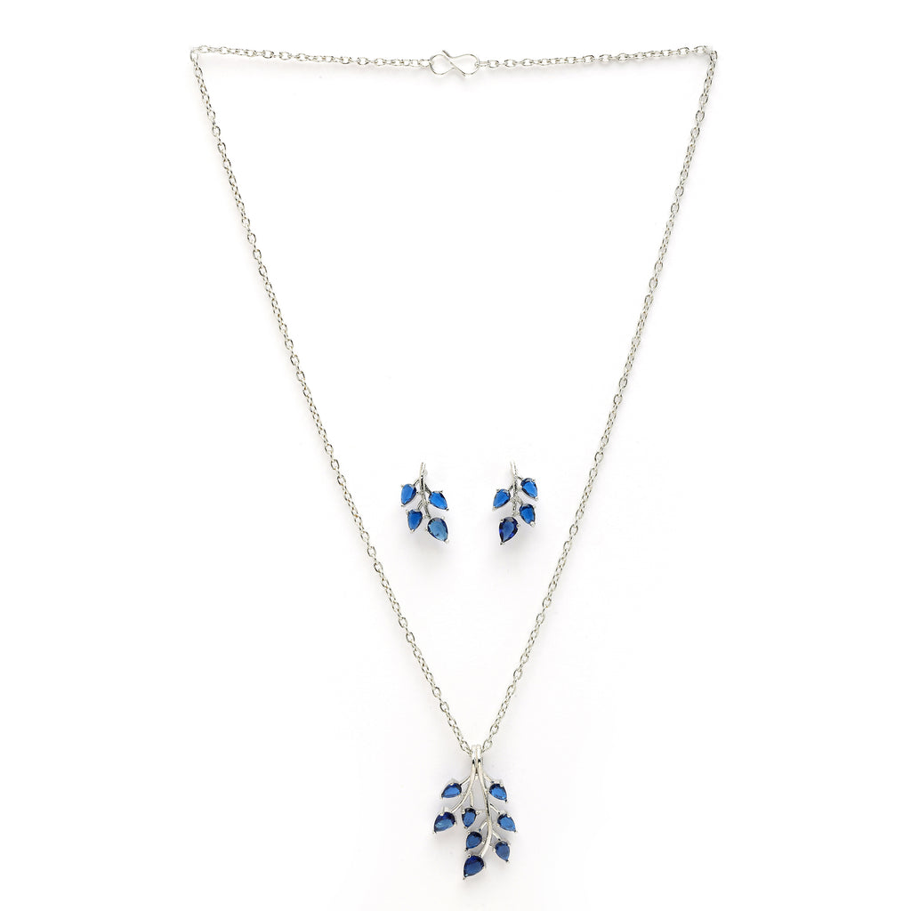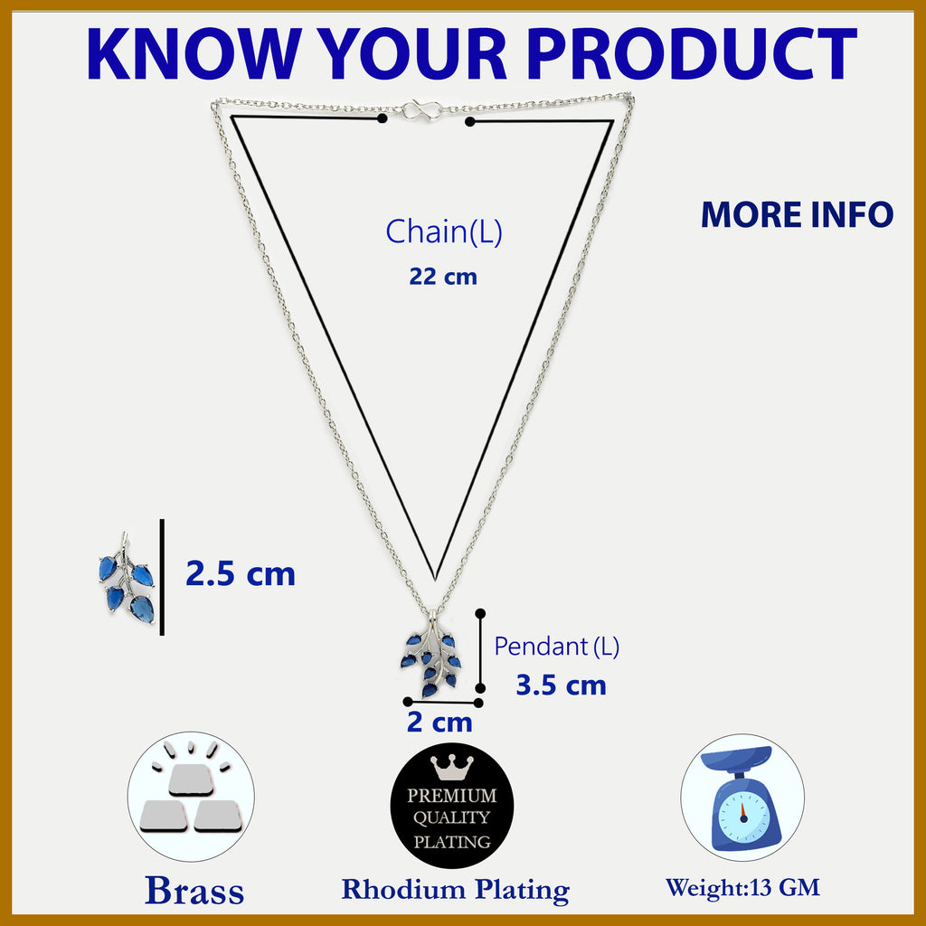 Elegant Floral Design: This silver-plated pendant set features a delicate floral design with blue stones, adding a touch of sophistication and femininity to your look.