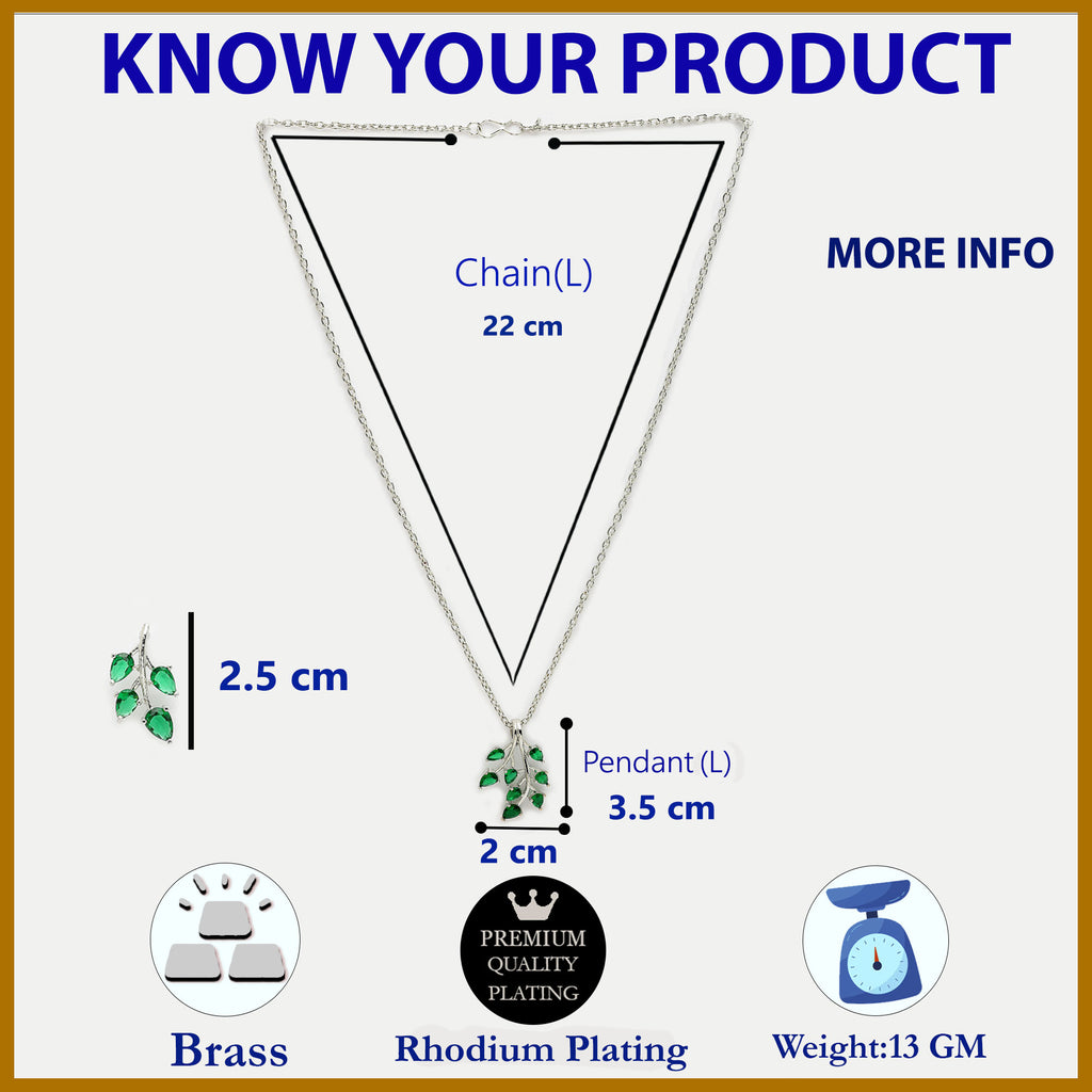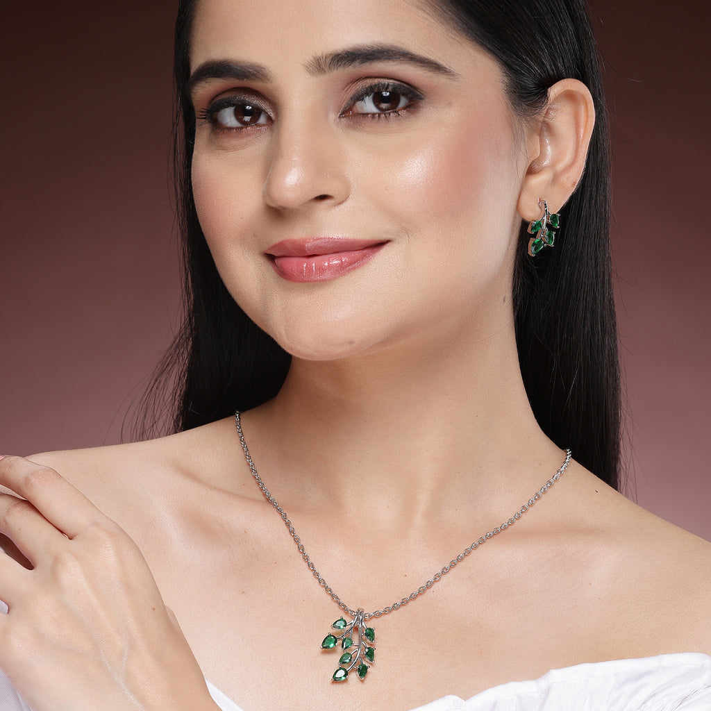 Elegant Floral Design: This silver-plated pendant set features a delicate floral design with soft green stones, adding a touch of sophistication and femininity to your look.