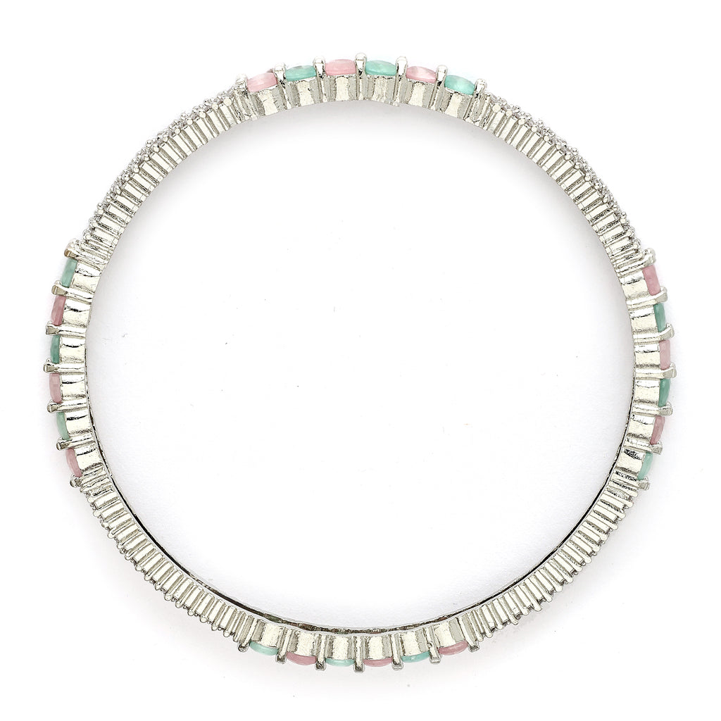 - Elegant Design: These Rhodium Plated bangles are adorned with Pastel American diamonds, adding a lively and luxurious charm to your attire.