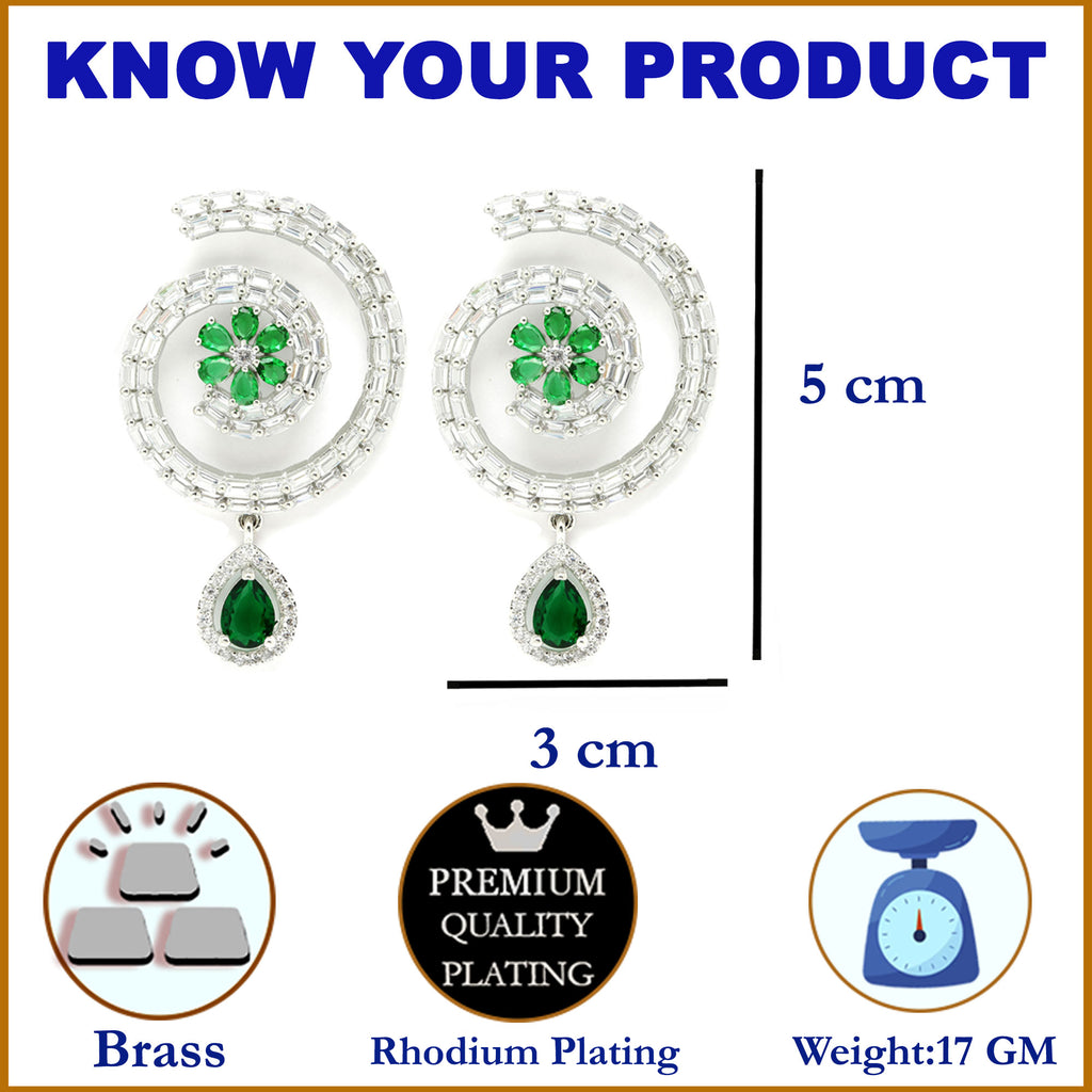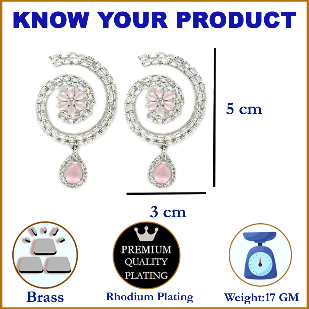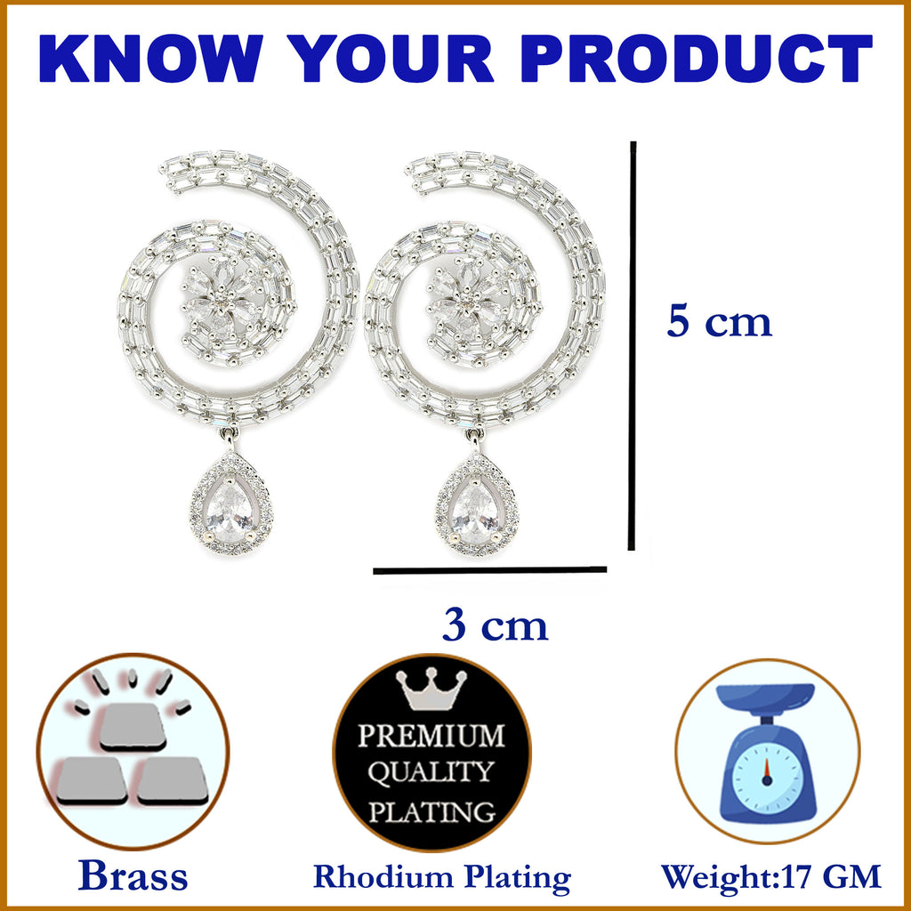 Rhodium-Plated with Silver-Toned circular drop earrings, has American Diamond studded secured with a post and back.