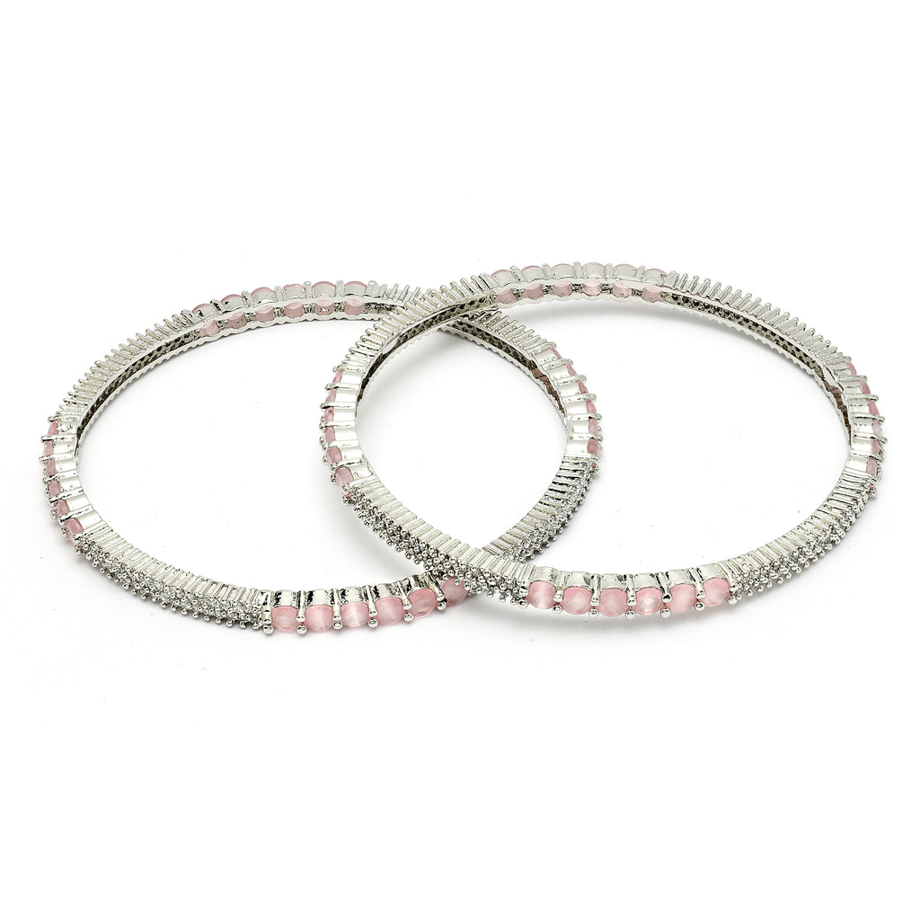 - Elegant Design: These rhodium-plated Kada bangles are studded with pink American diamonds, creating a sophisticated and stylish look.