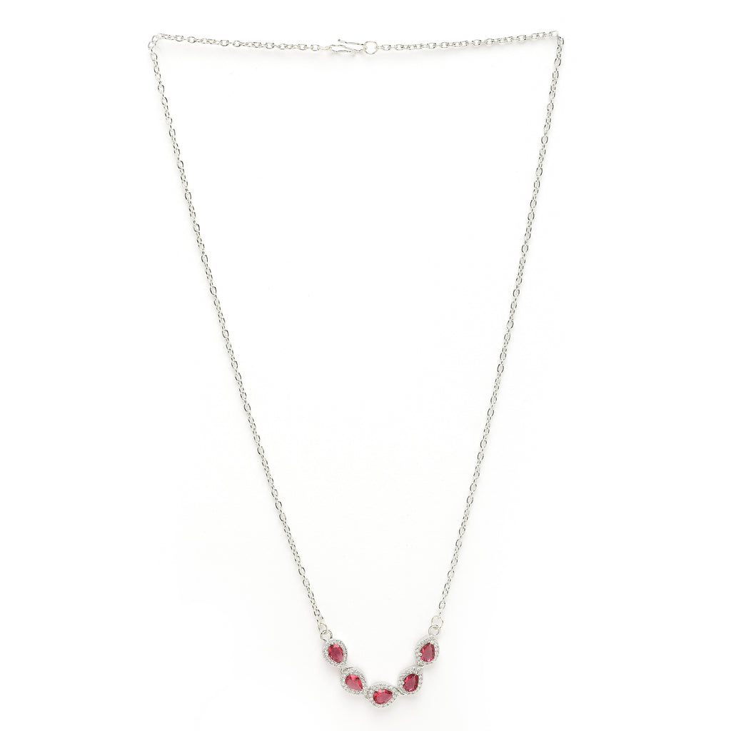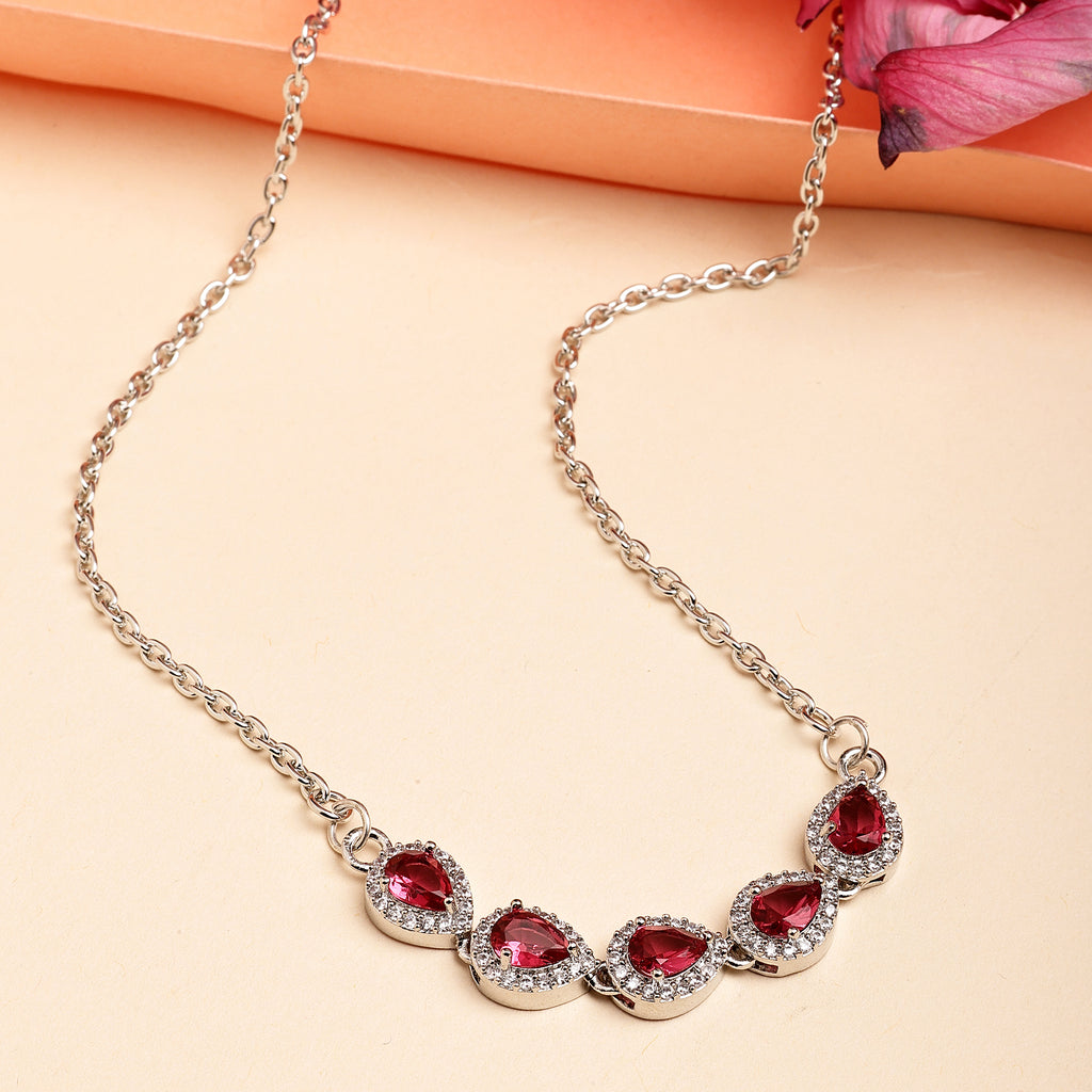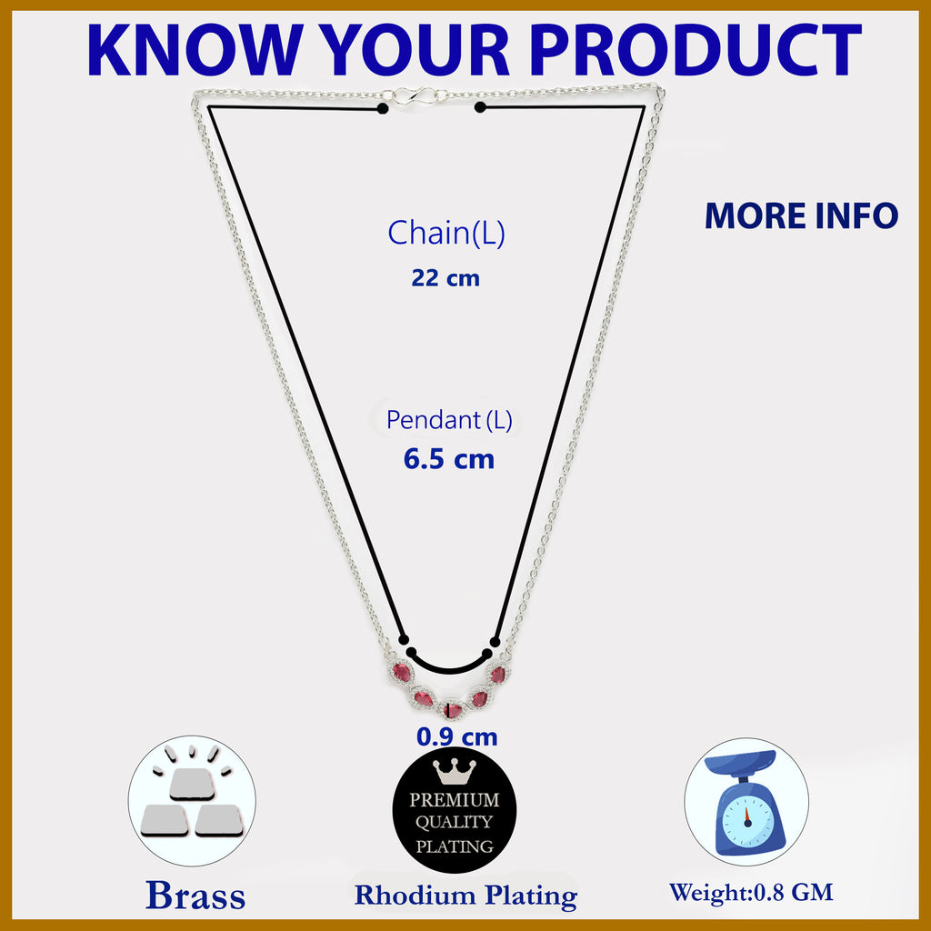Elegant Design: Rhodium-plated pendant set featuring a classy tear-drop shape adorned with sparkling red & White American diamonds for a refined look.
