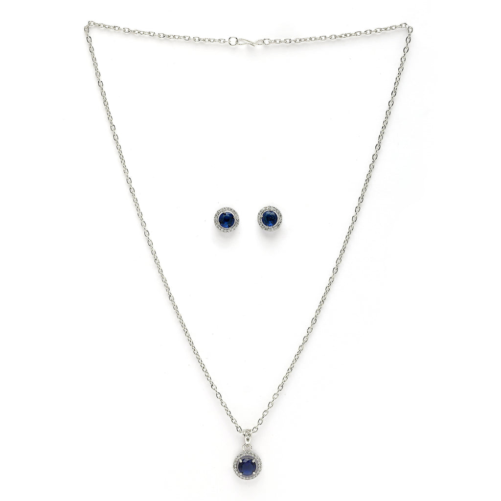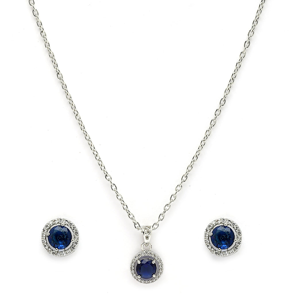 Chic Round Design: This rhodium-plated pendant set features a sleek circular design, enhanced with a stunning blue American diamond for a touch of modern elegance.