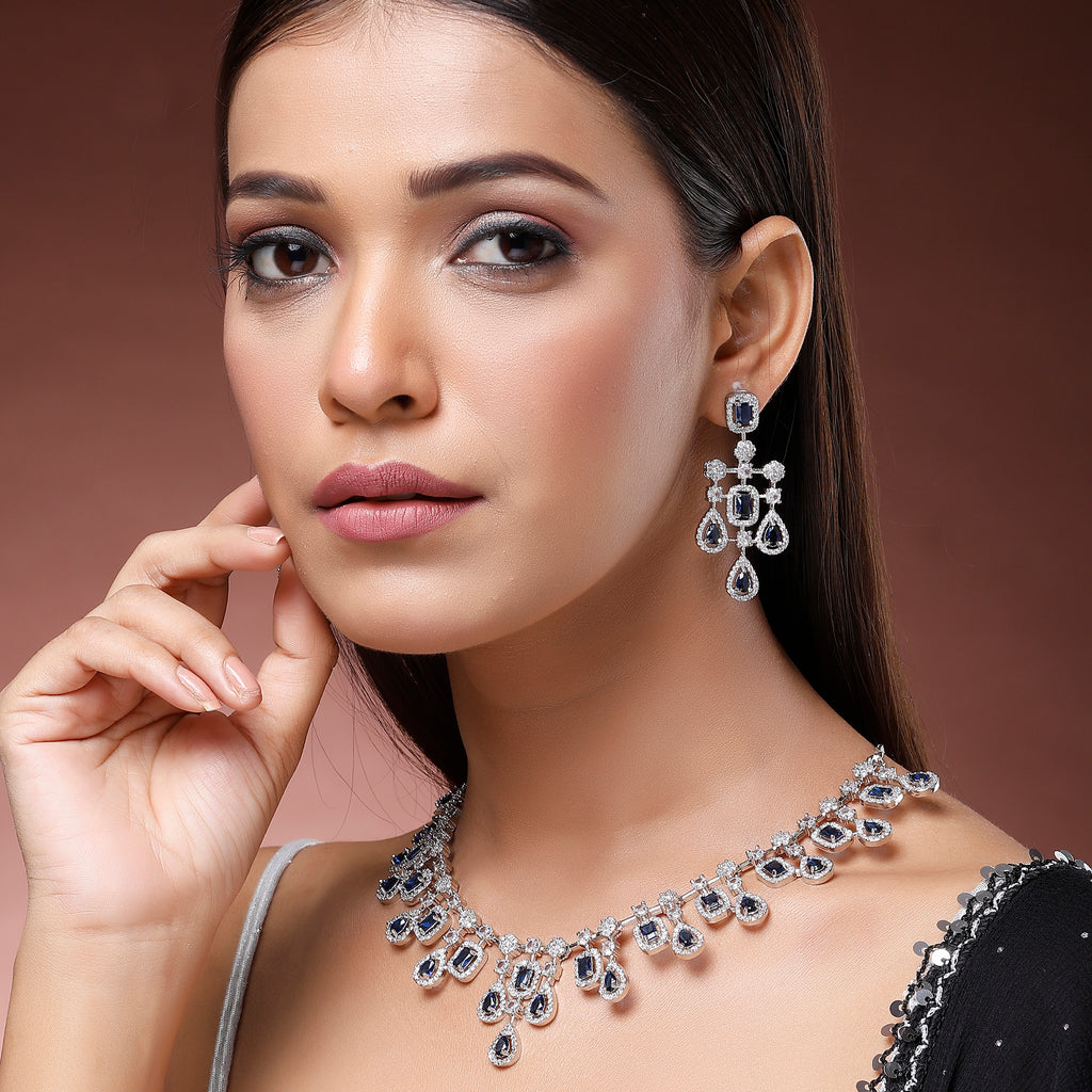 Elegant Royal Design: This rhodium-plated necklace set boasts a sophisticated royal design, exuding timeless elegance.