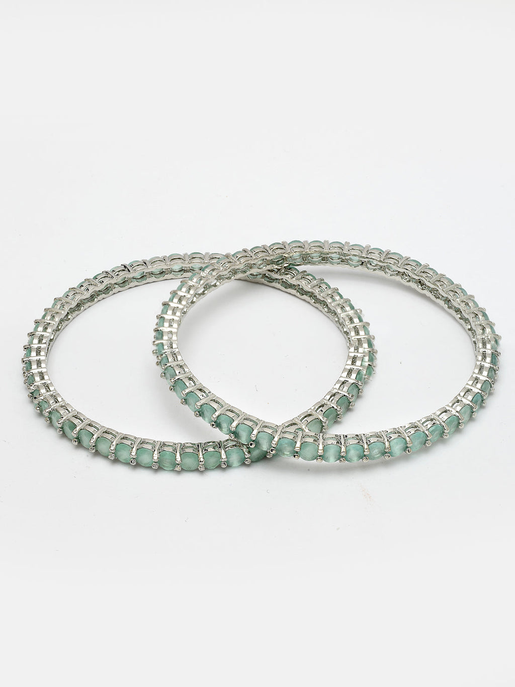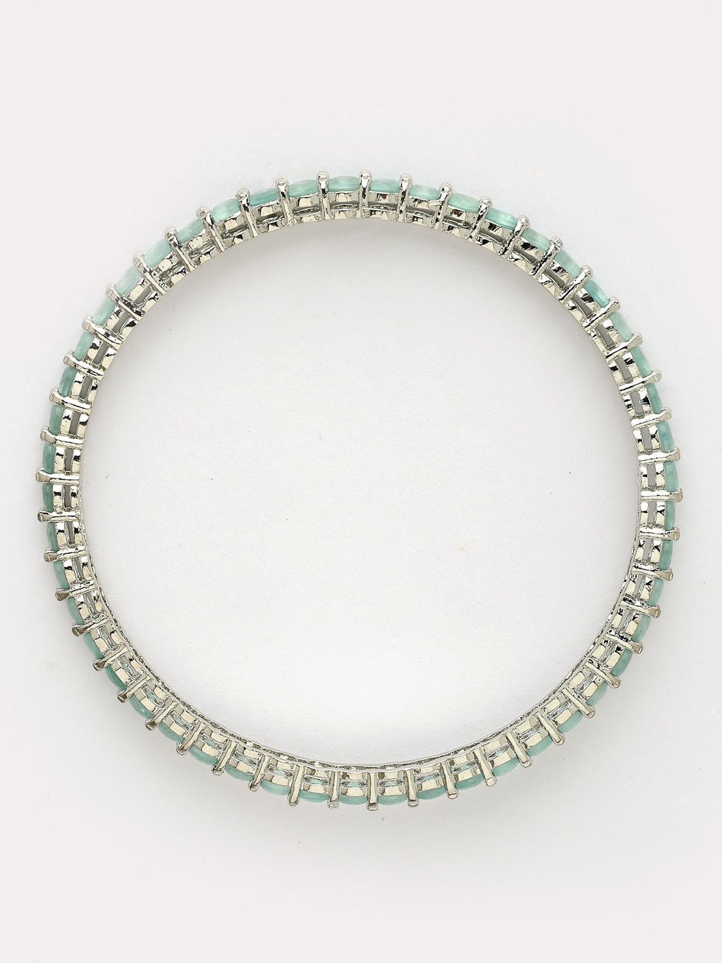 - Sophisticated Design: These rhodium-plated thin bangles are beautifully studded with sea green American diamonds, offering a unique and elegant touch to your look.