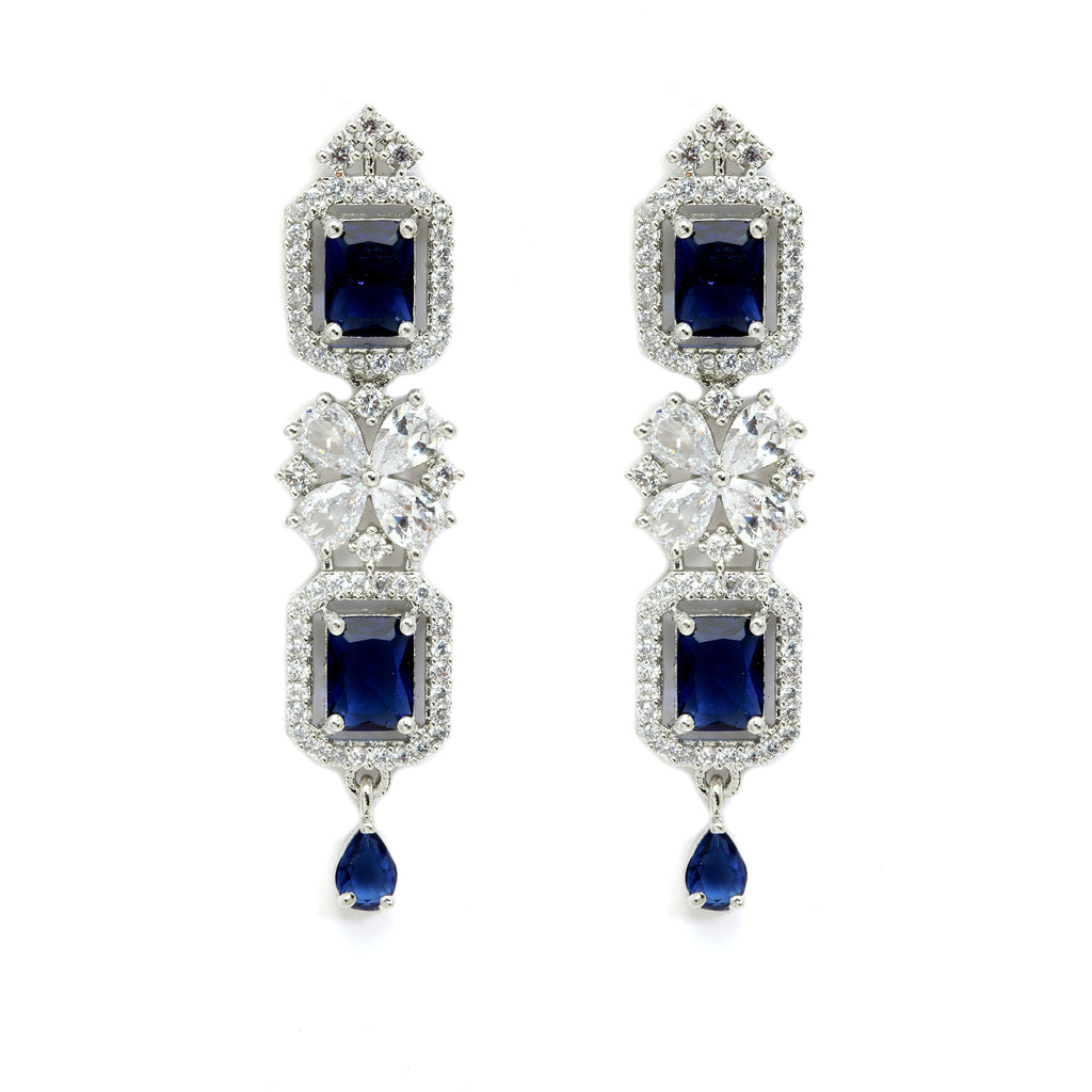 This jewellery set consists of a necklace & a pair of earrings. Rhodium-Plated with Silver-Toned necklace has Navy Blue and White American Diamond studded, has secured with a Hook closure. A pair of matching drop earrings, each secured with a post-and-back closure.