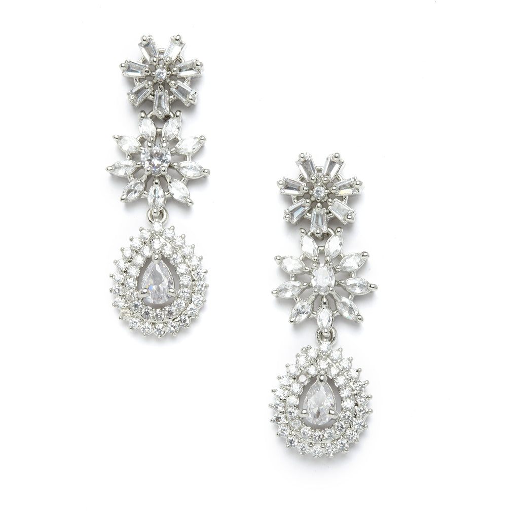 Rhodium-Plated with Silver-Toned Floral Design White American Diamond Studded Jewellery Set