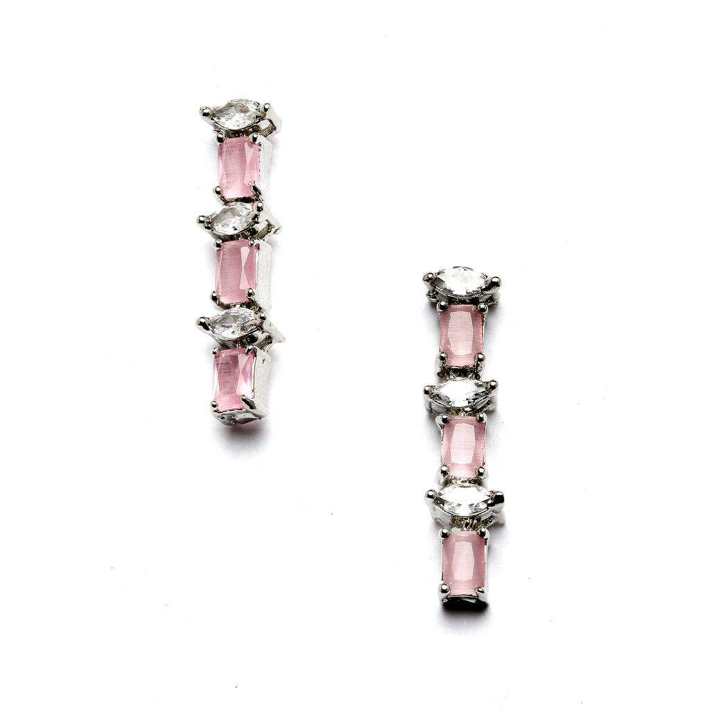 This jewellery set consists of a necklace and a pair of earrings. Rhodium-Plated with Silver-Toned Pink and White American Diamond studded necklace, secured with Hook closure. A pair of matching earrings, each secured with post and back closure.