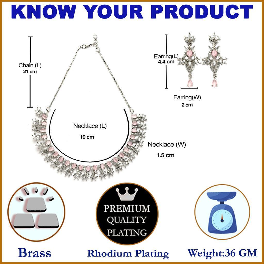Rhodium-Plated with Silver-Toned Pink and White American Diamond Studded Embellish Statement Jewellery Set