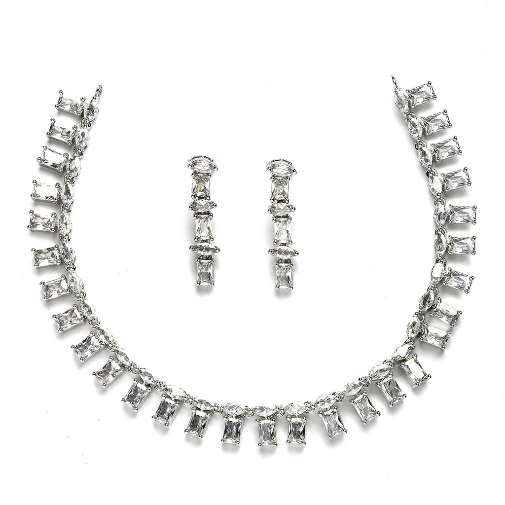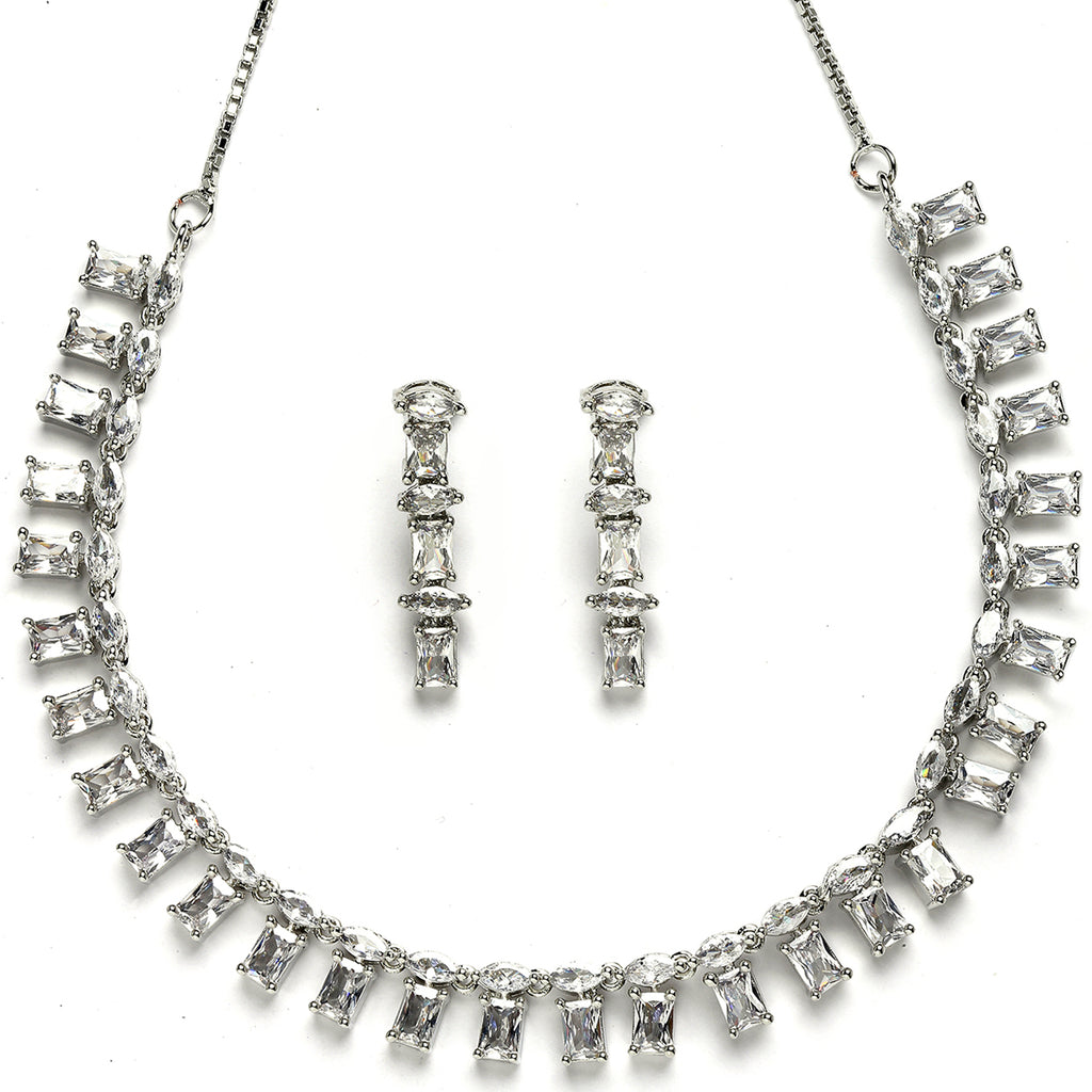 Rhodium-Plated with Silver-Toned White American Diamond Studded Jewellery Set