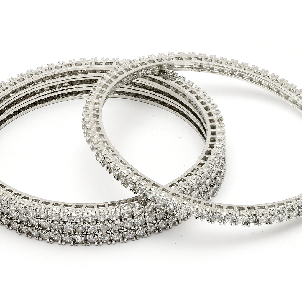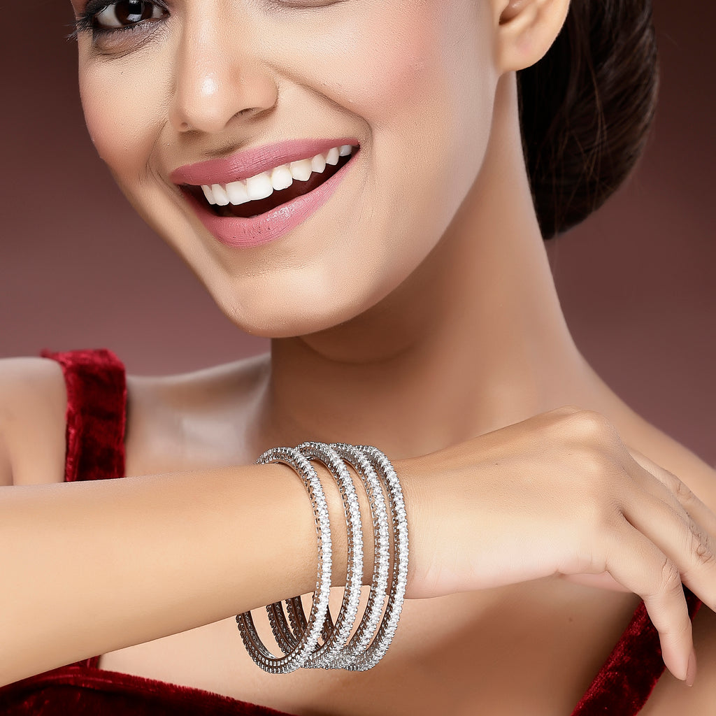 Elegant & Subtle Design: These rhodium-plated thin bangles are adorned with small white American diamonds, adding a touch of elegance and sparkle to any outfit.