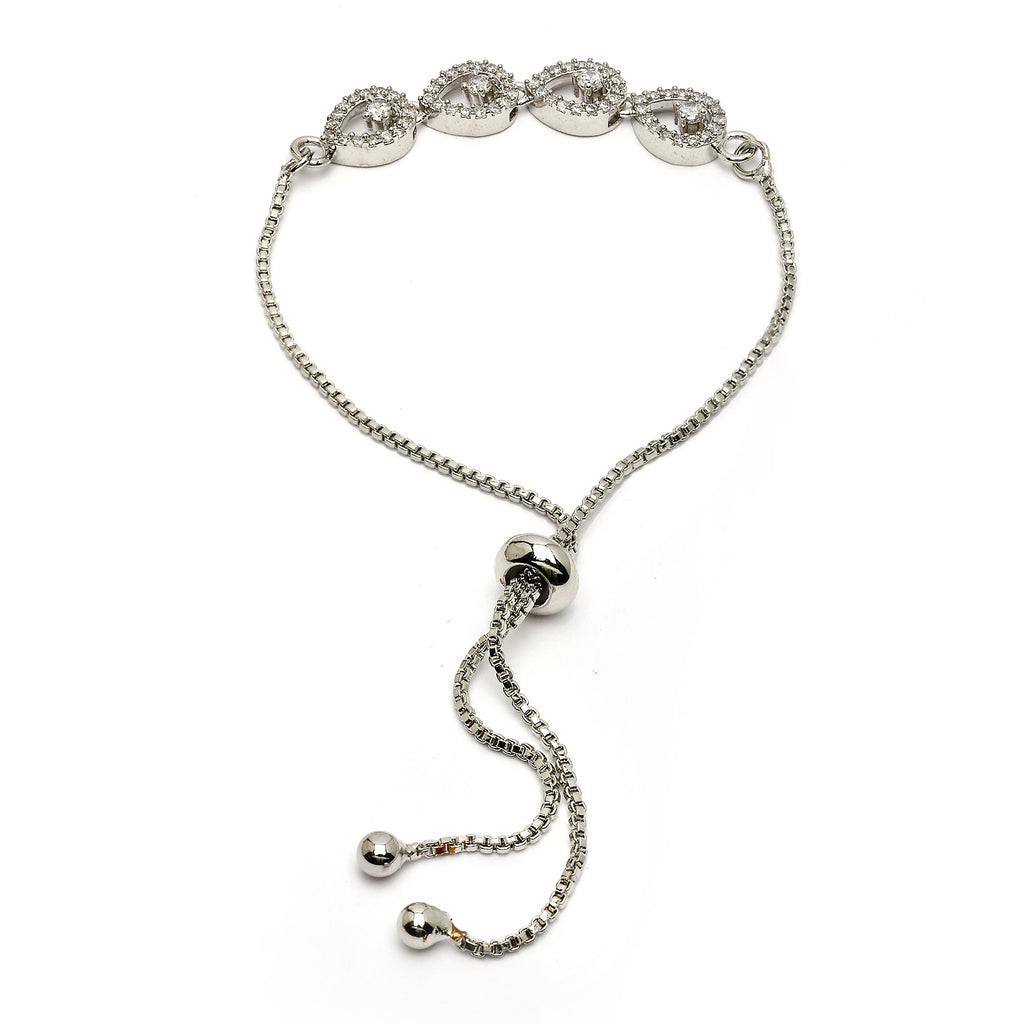 Elegant Drop Shape Design: This rhodium-plated wraparound bracelet showcases sparkling white American diamonds in a classic drop shape, adding a touch of sophistication to your look.
