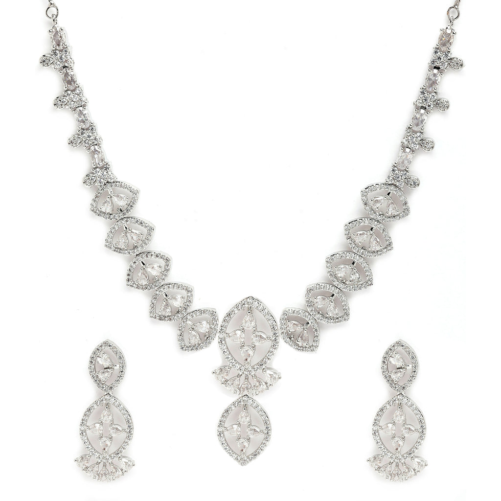 Exquisite Ladymania Design: Featuring an elegant and intricate design, this rhodium-plated necklace set is adorned with shimmering white American diamonds for a luxurious appeal.