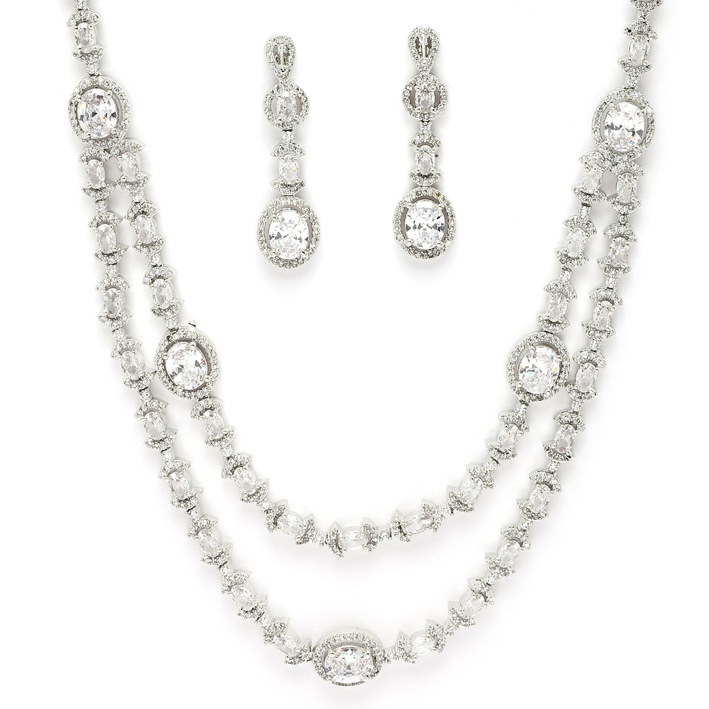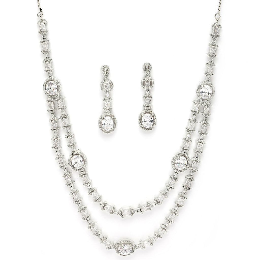 Elegant White American Diamonds: This rhodium-plated necklace set is adorned with dazzling white American diamond stones, offering a sophisticated and timeless look.