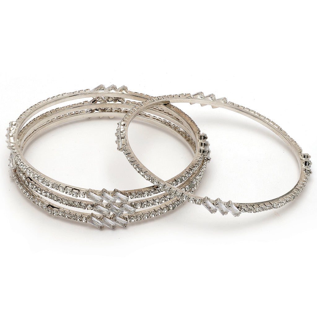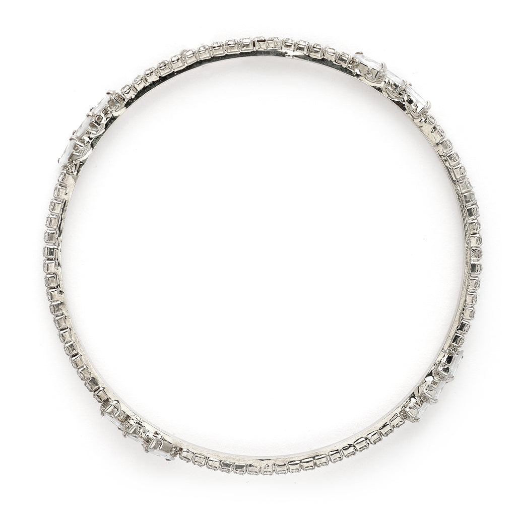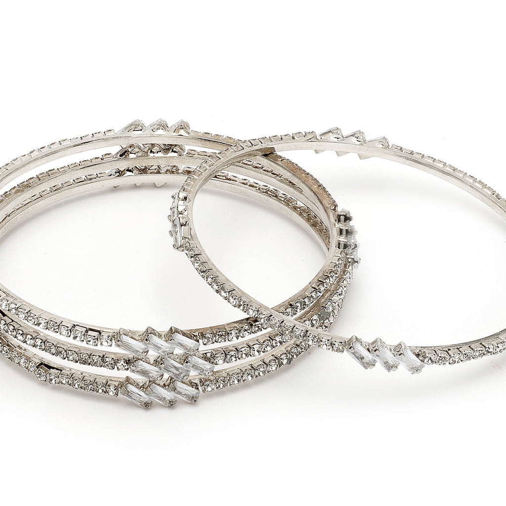 Elegant & Sleek Design: These rhodium-plated thin bangles are studded with white American diamonds, offering a sleek and sophisticated touch to any outfit.