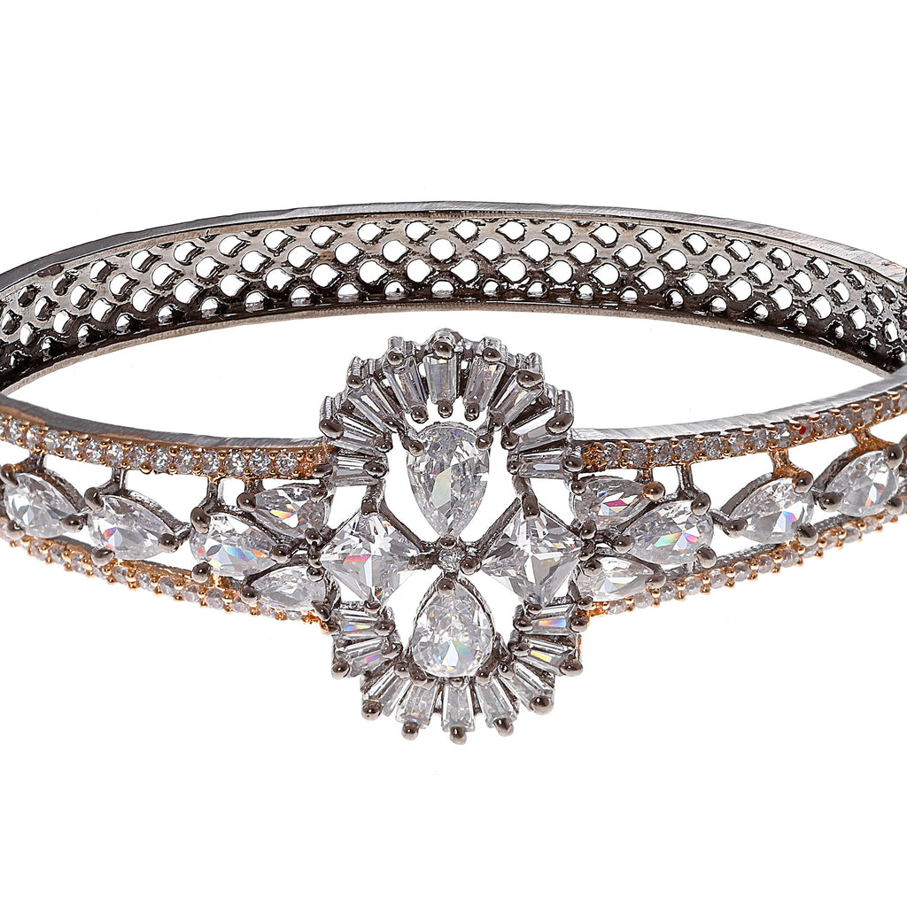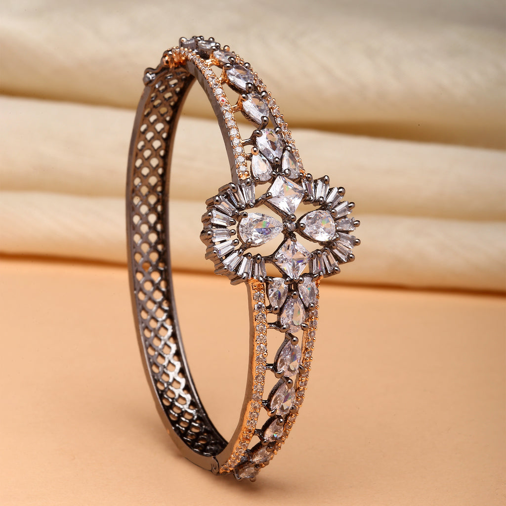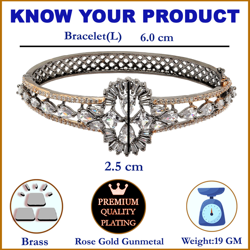 Elegant Design: This rose gold plated bracelet showcases intricate alignment of the stones.