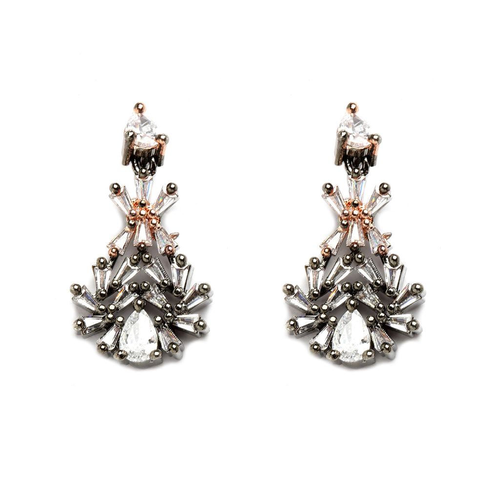 This jewellery set consists of a necklace and a pair of earrings. Rose Gold-Plated with Floral and Pear Design necklace, has Rose Black and White American Diamond-studded, secured by Hook closure. A pair of matching drop earrings, secured with a post-and-back closure.