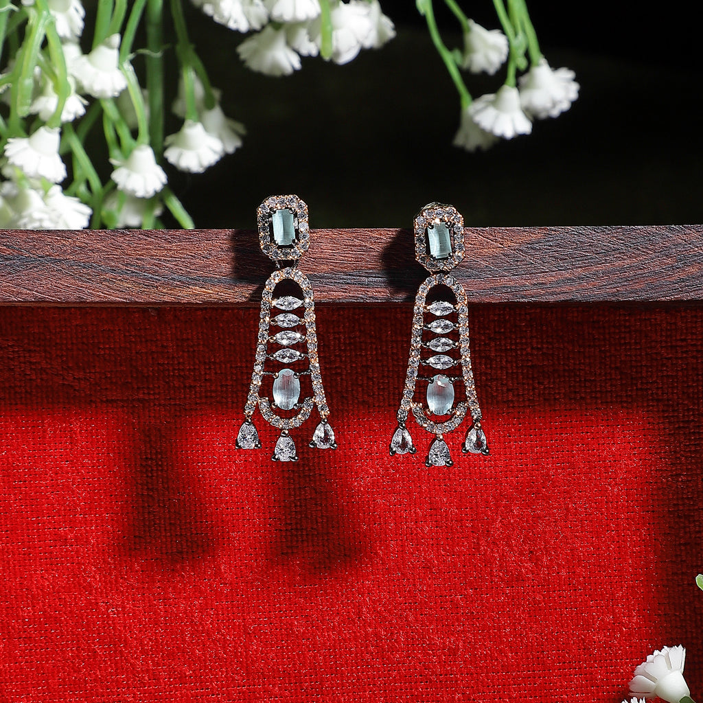Rose Gold-Plated Gunmetal Toned Sea Green American Diamond studded Classic Contemporary Drop Earrings