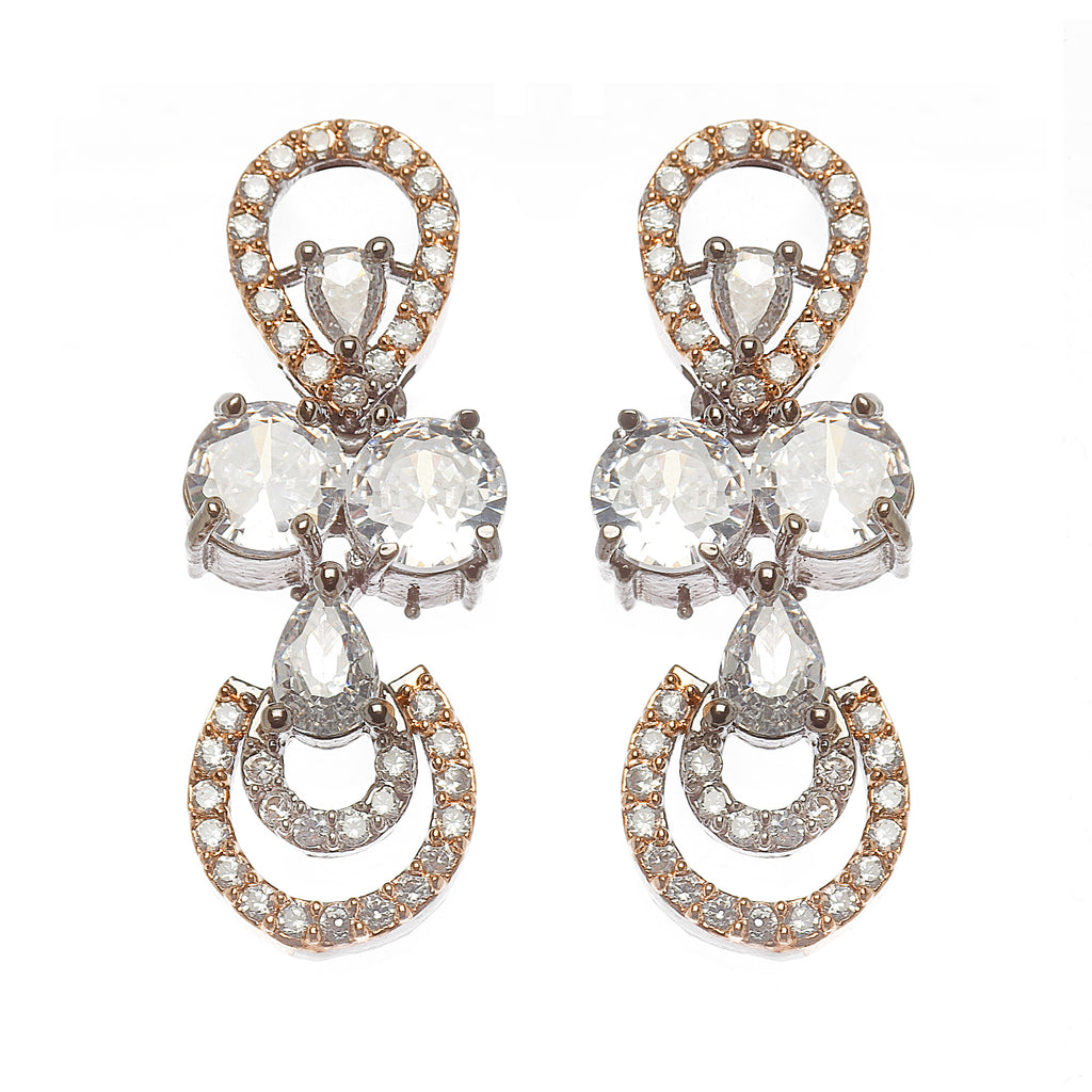 This jewellery set consists of a necklace and a pair of earrings. Rose Gold-Plated Gunmetal Toned white american diamonds studded contemporary necklace, secured with s-hook closure. A pair of matching drop earrings, each secured with a post and back closure.
