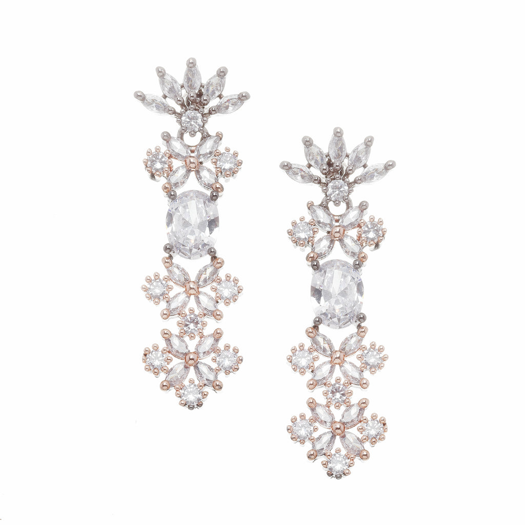 This jewellery set consists of a necklace and a pair of earrings. Rose Gold-Plated Gunmetal Toned white american diamonds studded wacky necklace, secured with hook closure. A pair of matching drop earrings, each secured with a post and back closure.