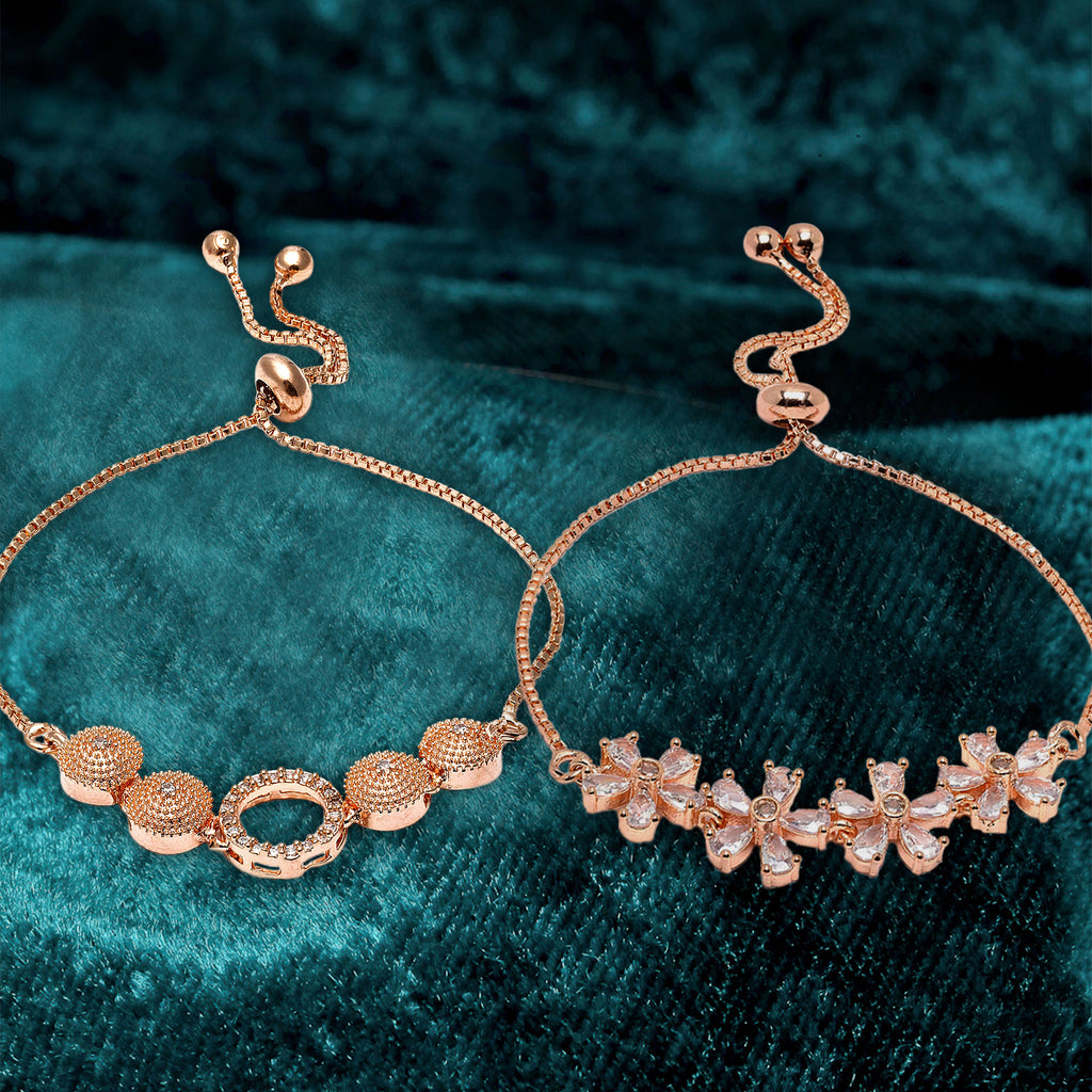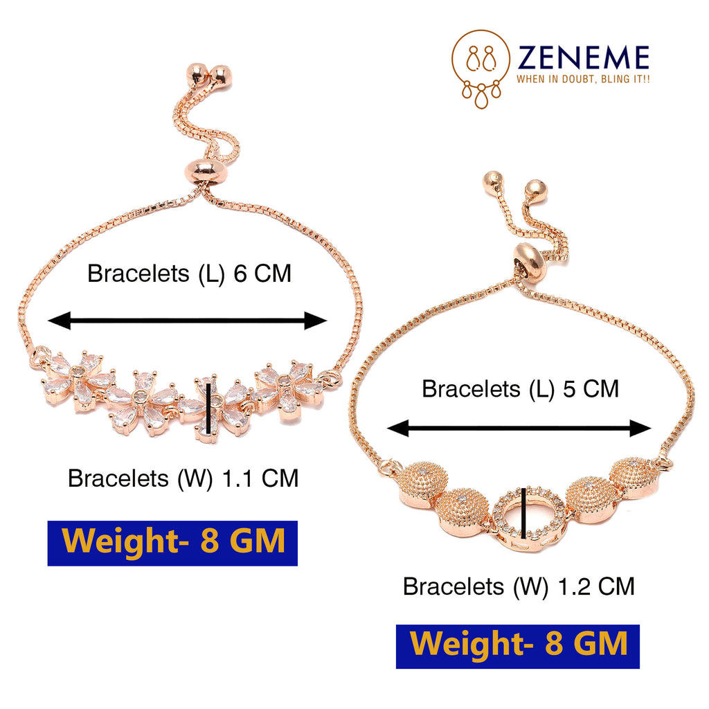 Elegant Design: This adjustable bracelet combo features a sleek & beautiful studded charm design with American diamonds, creating a sophisticated and eye-catching look.