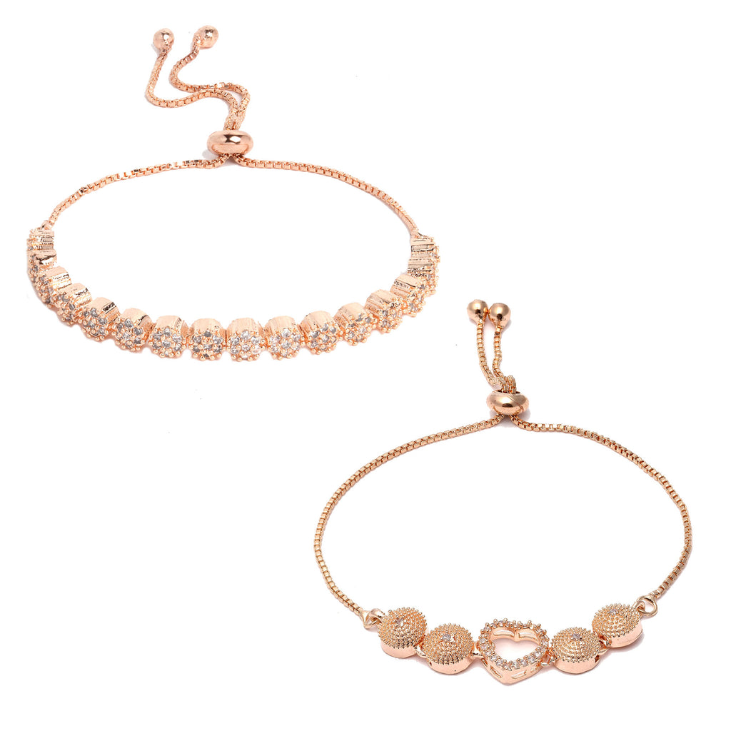 Elegant Design: This adjustable bracelet combo features a sleek & beautiful studded charm design with American diamonds, creating a sophisticated and eye-catching look.
