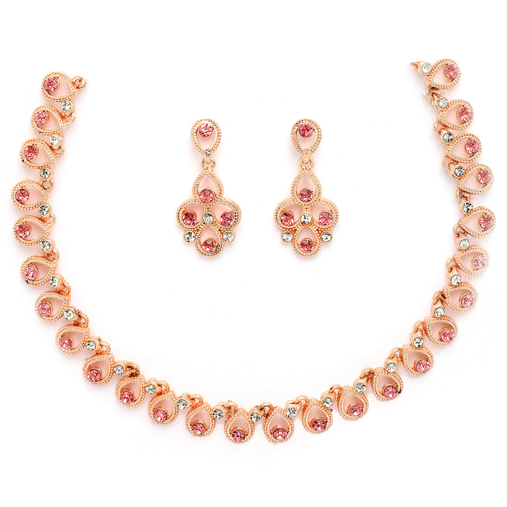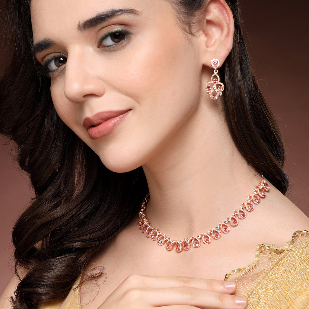 Elegant Design: This Rose Gold-plated necklace set boasts a sophisticated contemporary design, exuding timeless elegance.