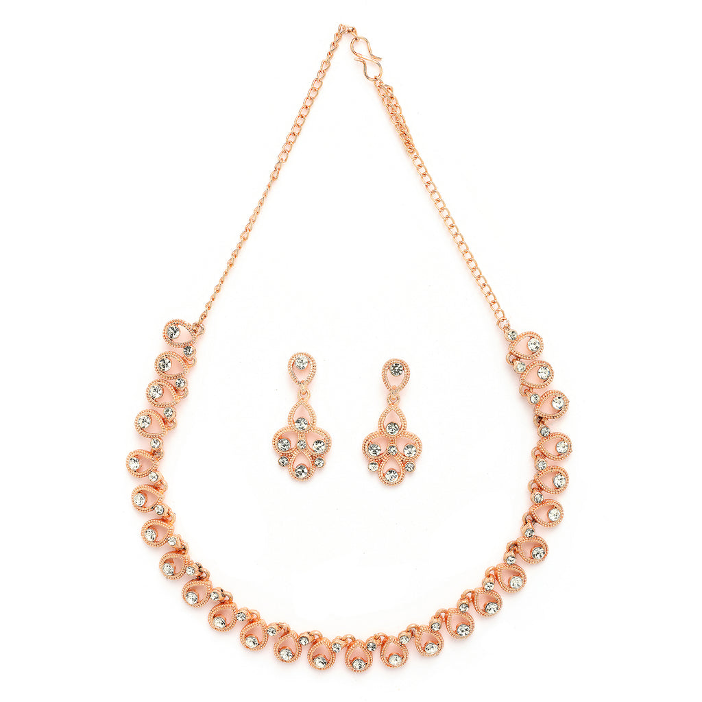 Elegant Design: This Rose Gold-plated necklace set boasts a sophisticated contemporary design, exuding timeless elegance.