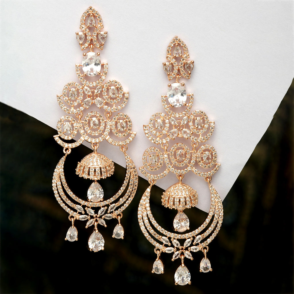 Rose Gold-Plated White American Diamond Floral Drop Earrings