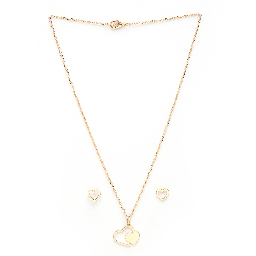 Charming Dual Heart Design: This rose gold-plated pendant set features a beautiful dual heart-shaped design, symbolizing love and connection, perfect for adding a romantic touch to your collection.