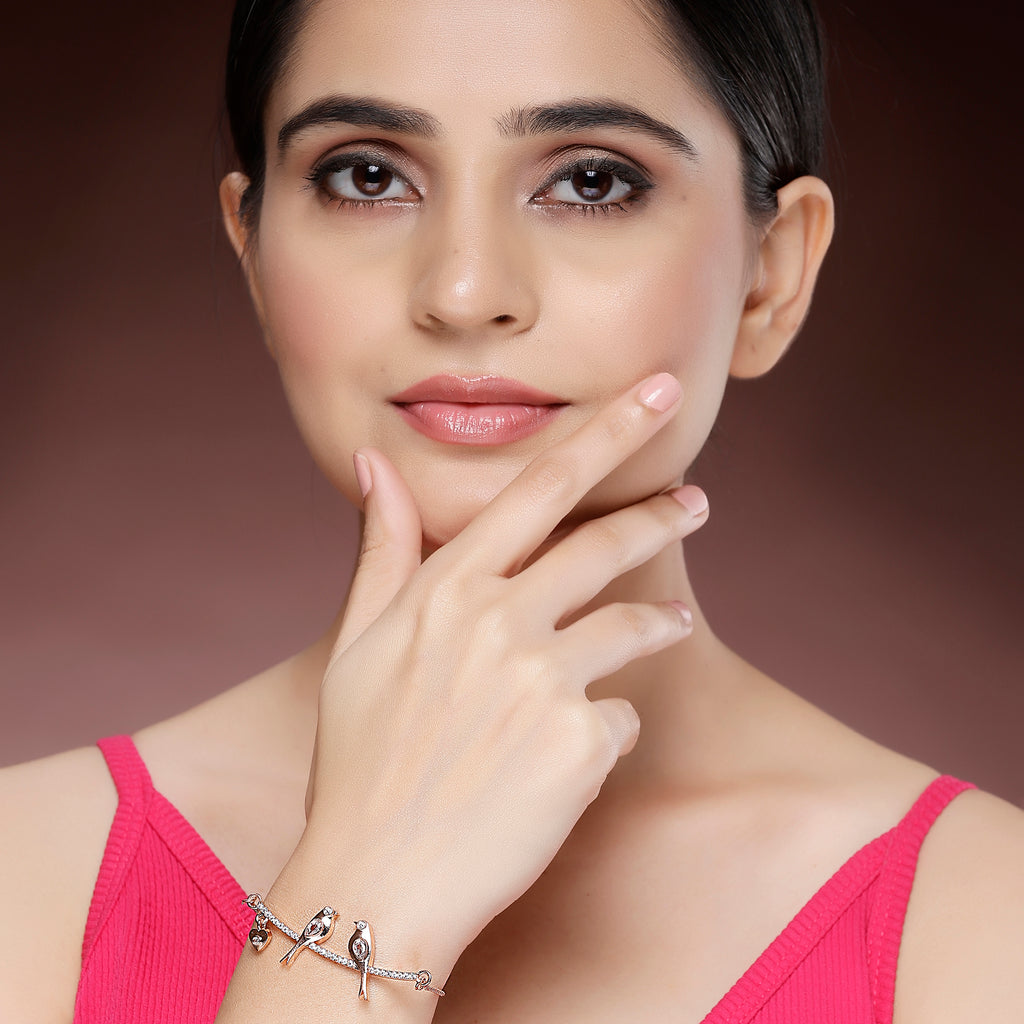 Charming Design: This rose gold-plated wraparound bracelet features a delicate love birds design, symbolizing love and unity, making it a perfect piece for romantic occasions.