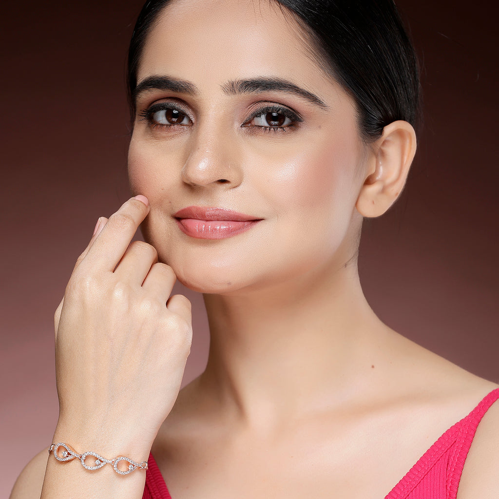 Premium Quality: Crafted with rose gold plating and sparkling American diamonds, this bracelet ensures lasting brilliance and sophistication.