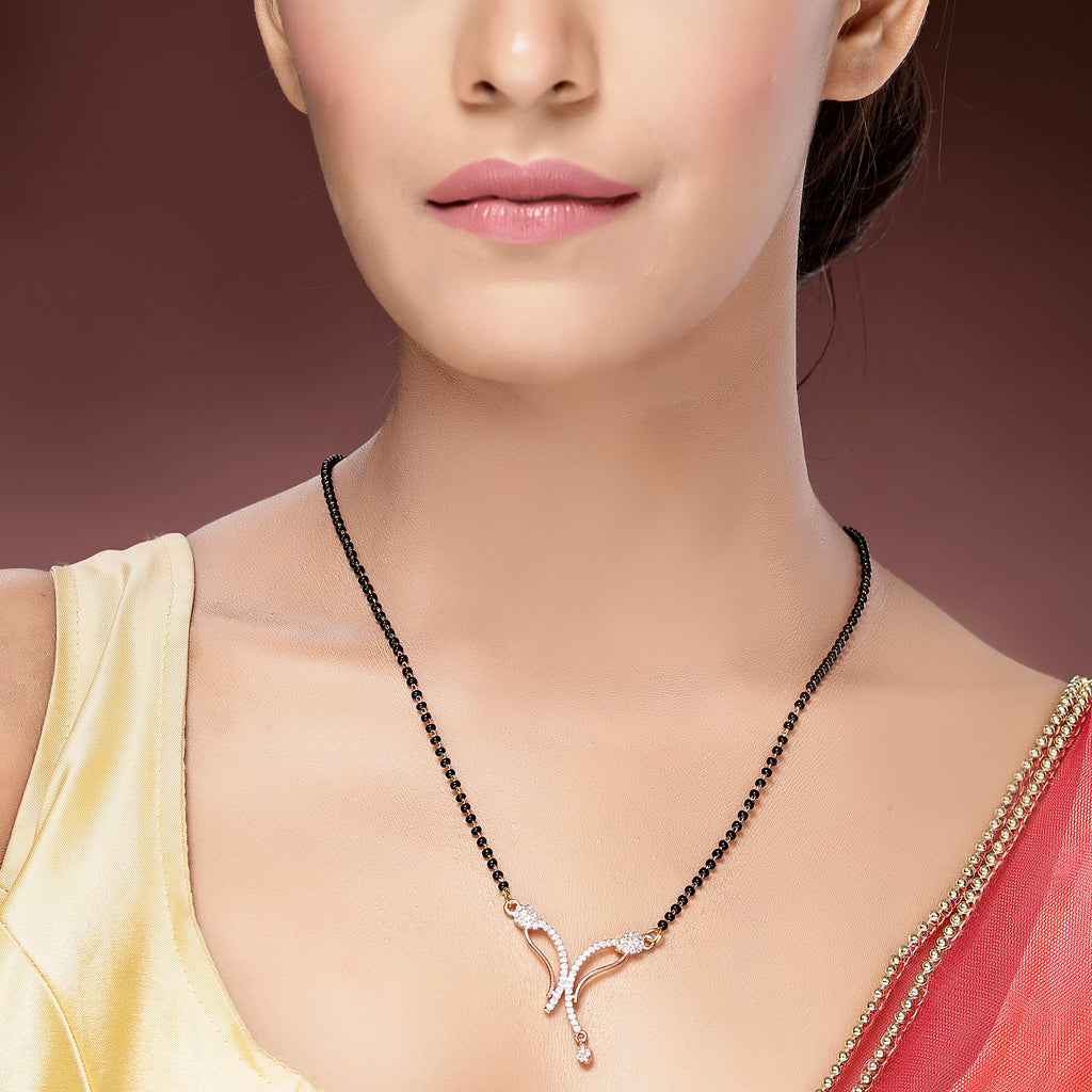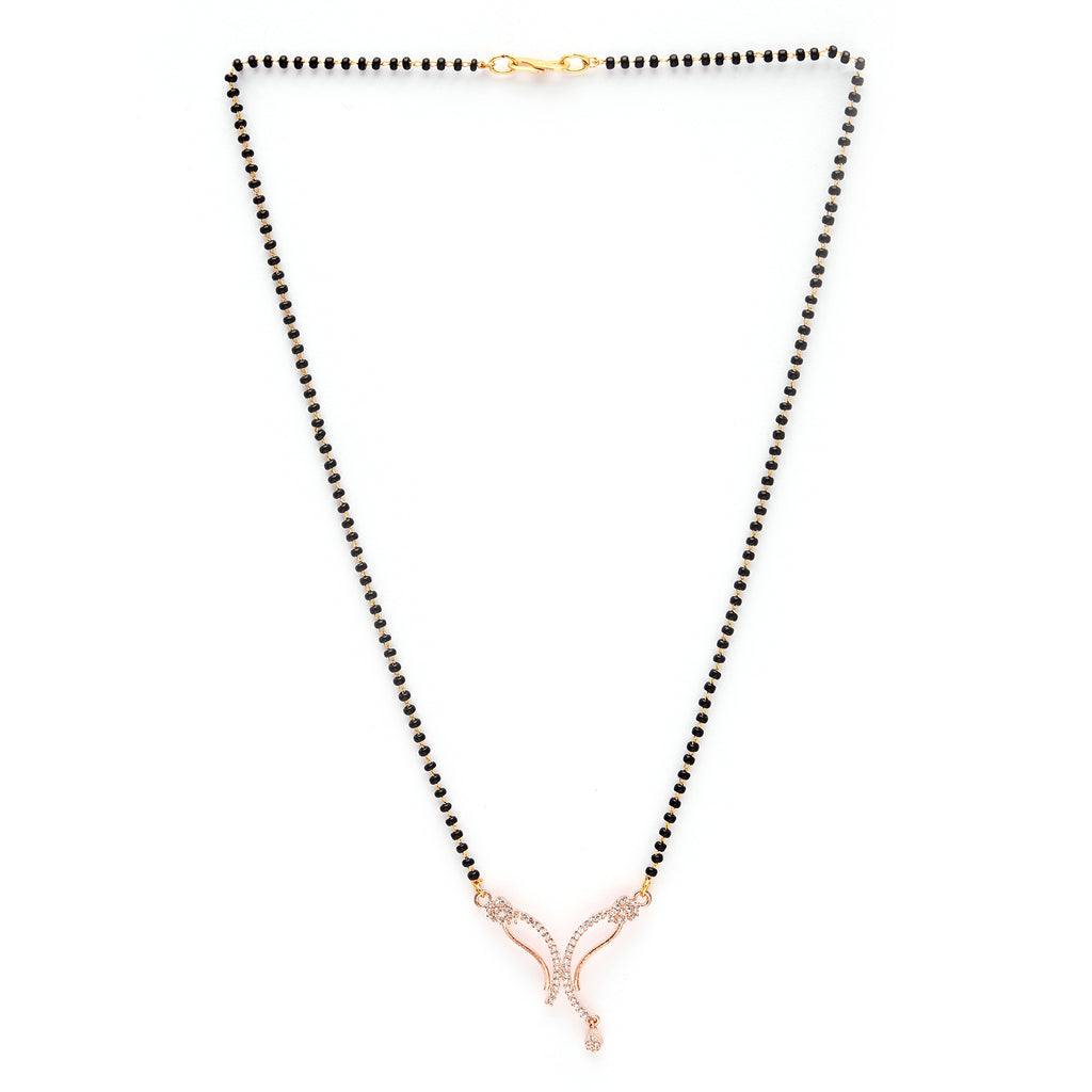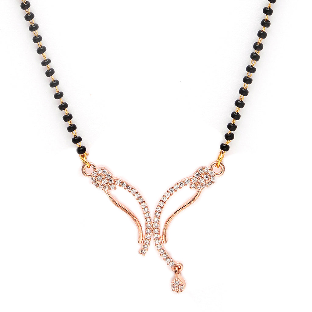 Elegant Design: This rose gold-plated Mangal Sutra features a delicate design, studded with sparkling white American diamonds. The perfect blend of tradition and modernity, it adds a touch of elegance to any outfit.