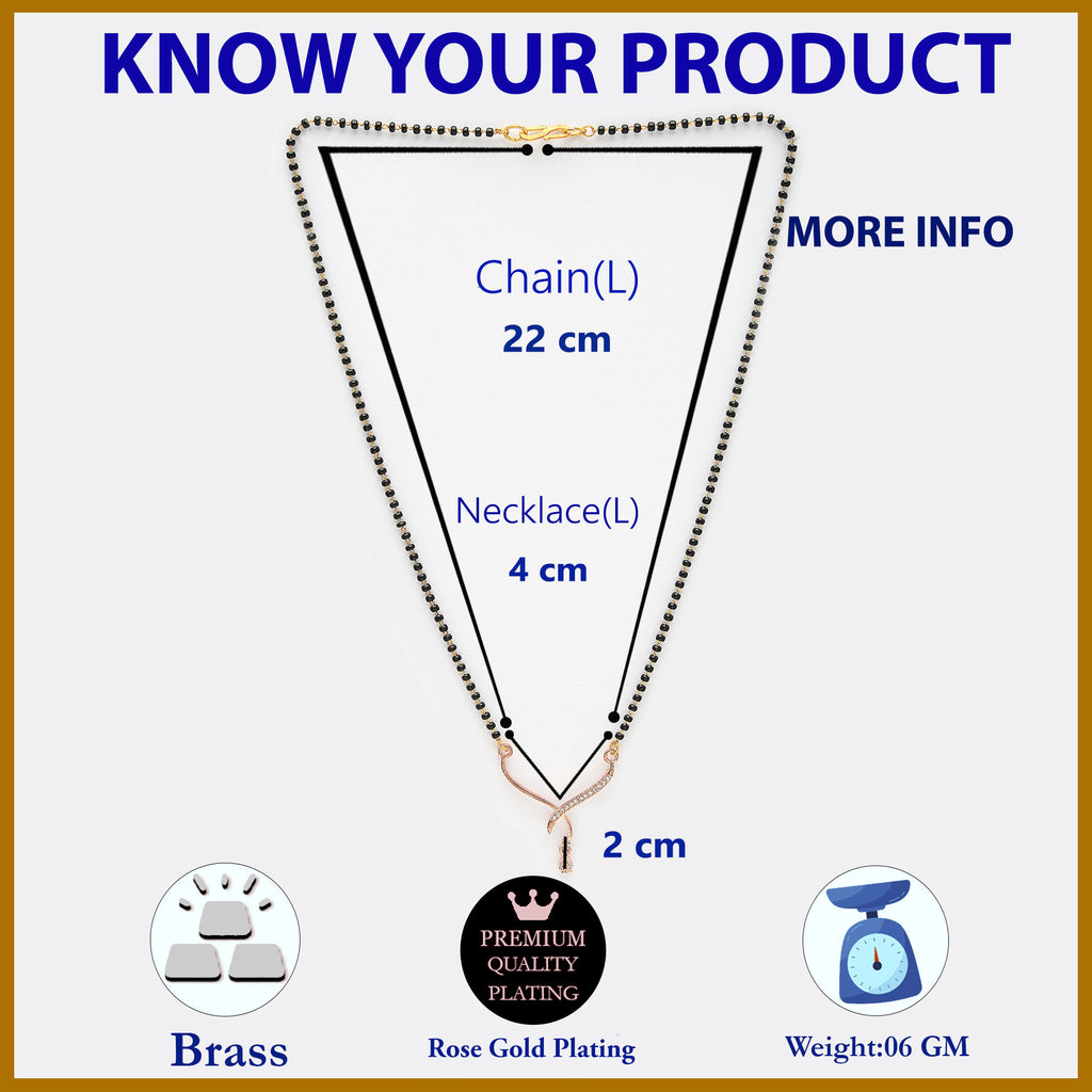 • High-Quality Craftsmanship: Crafted with precision, this Mangal Sutra combines the warm allure of rose gold plating with the brilliance of white American diamonds, creating a timeless piece of jewelry.