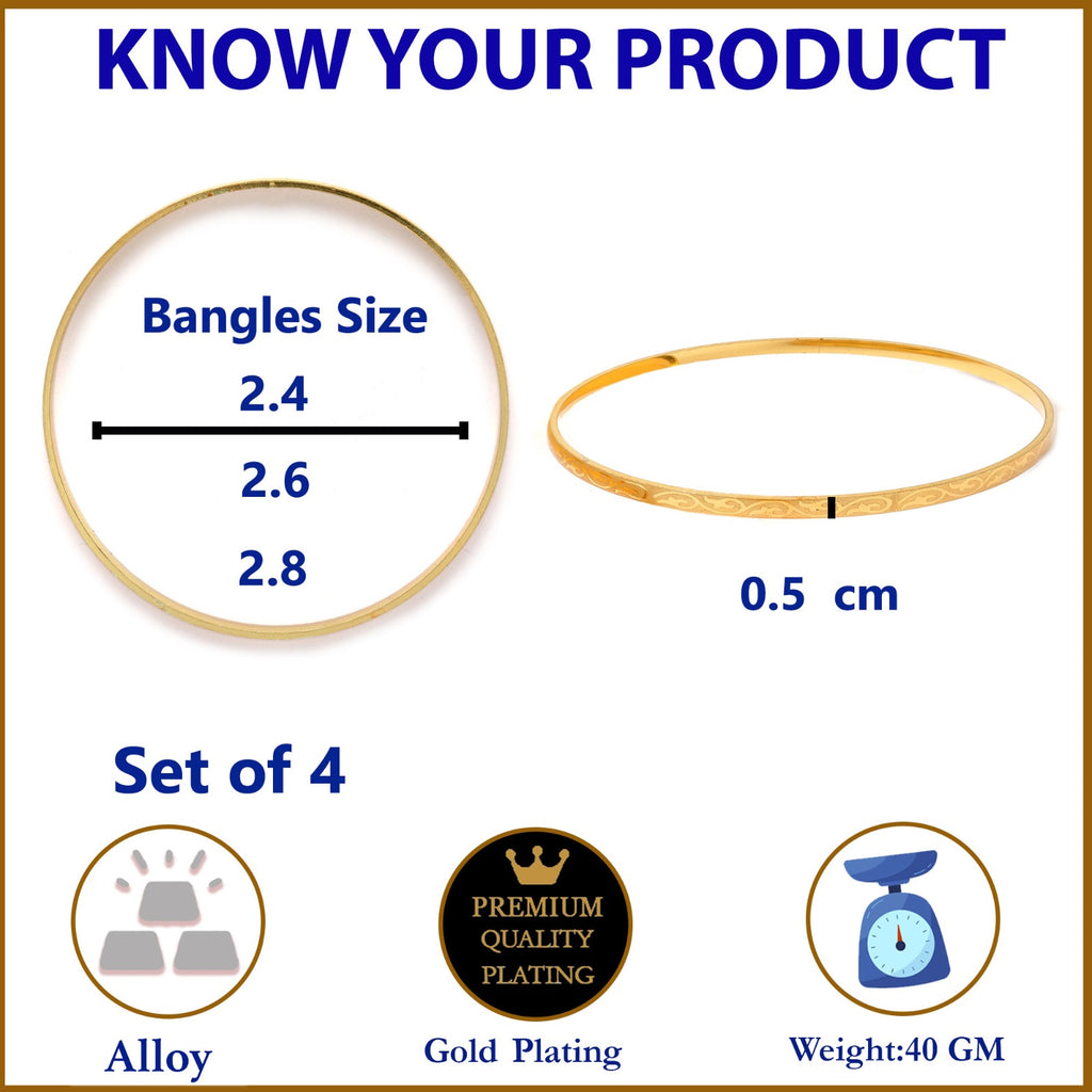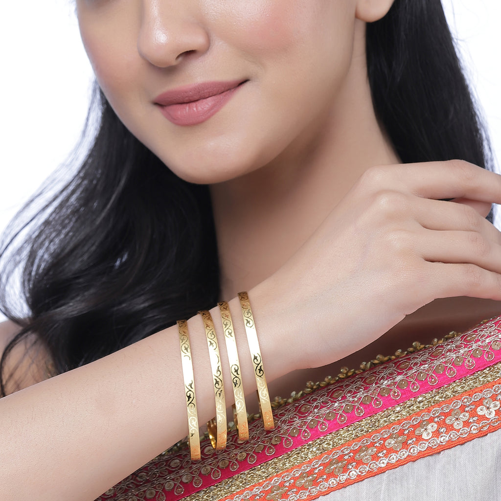 Set Of 4 Gold-Plated Floral Vine Textured Handcarfted Classic Bangles