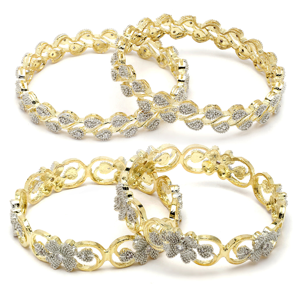 Set Of 4 Gold-Plated White American Diamond studded Dual Toned Paisley and Floral Design Bangles