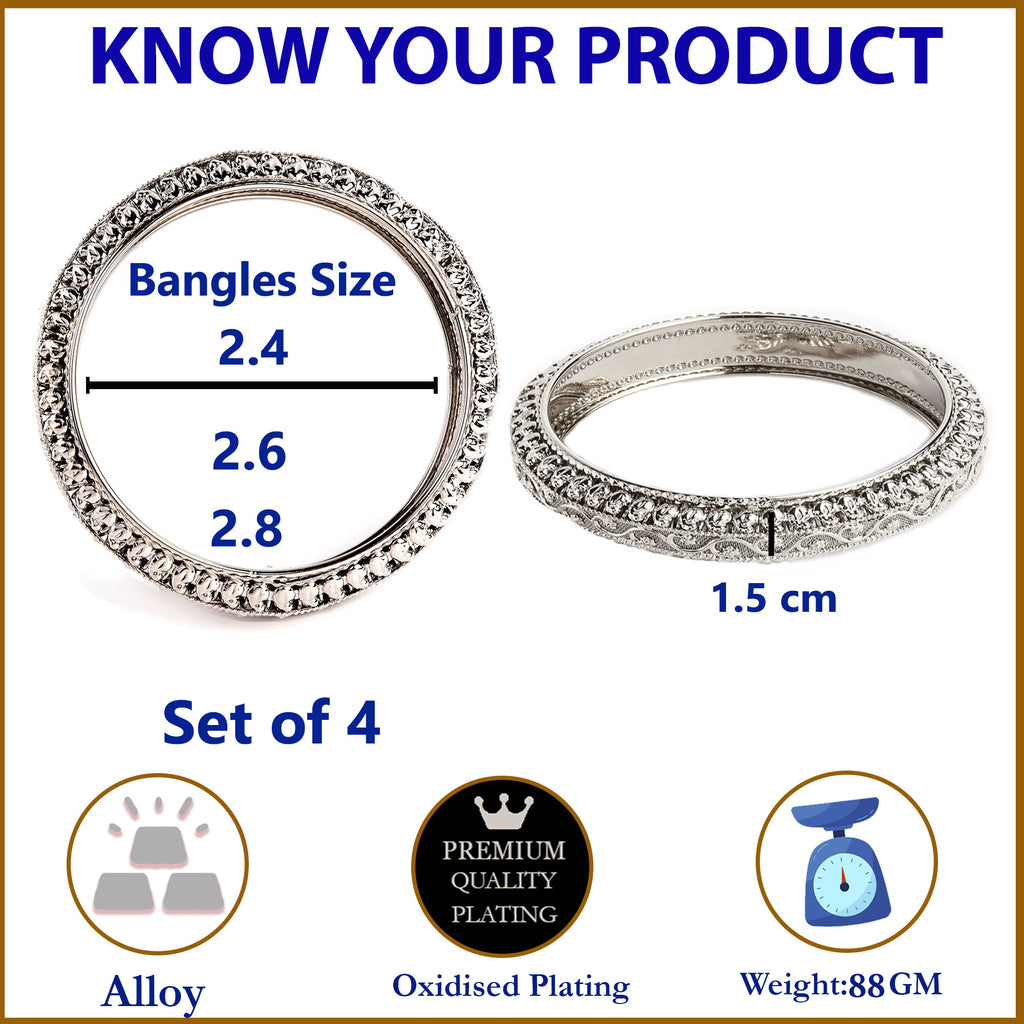 Set Of 4 Oxidised Silver-Plated Classic Intricate Textured Bangles Jewellery Set
