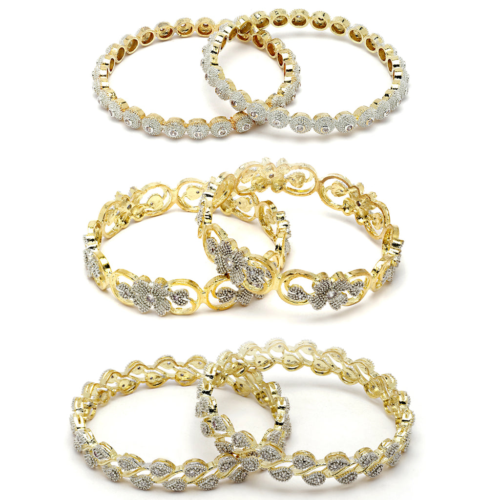 Set Of 6 Gold-Plated White American Diamond studded Dual Toned Multi Design Bangles