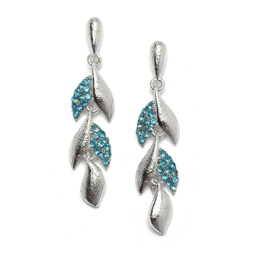 This jewellery set consists of a necklace and a pair of earrings. Silver-Plated blue cubic zirconia studded leaf shaped necklace, secured with s-hook closure. A pair of matching drop earrings, each secured with a post and back closure.