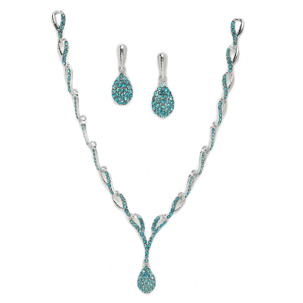 This jewellery set consists of a necklace and a pair of earrings. Silver-Plated blue & white cubic zirconia studded teardrop shaped necklace, secured with s-hook closure. A pair of matching drop earrings, each secured with a post and back closure.