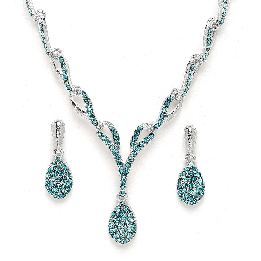 Silver-Plated Blue & White Cubic Zirconia Studded Teardrop Shaped Necklace with Earrings Jewellery Set