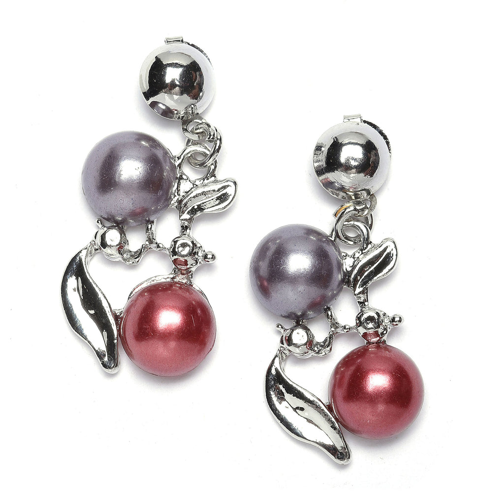 This jewellery set consists of a necklace and a pair of earrings. Silver-Plated red & white artificial stone studded leafy shaped necklace, secured with s-hook closure. A pair of matching drop earrings, each secured with a post and back closure.