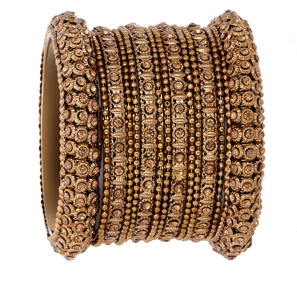 Gold-Plated Mehandi Toned White Artificial Stones studded Bangles Jewellery Set (Set Of 6)