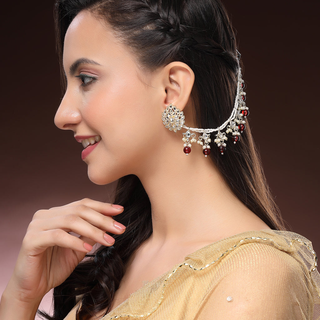 - Elegant Attachment: This gold-plated pearl and kundan studded Ear chain is a beautiful addition to your favorite earrings, adding a stylish and traditional flair. Perfect for creating a bridal look or for weddings, anniversary and festive wear.