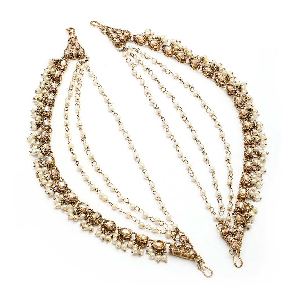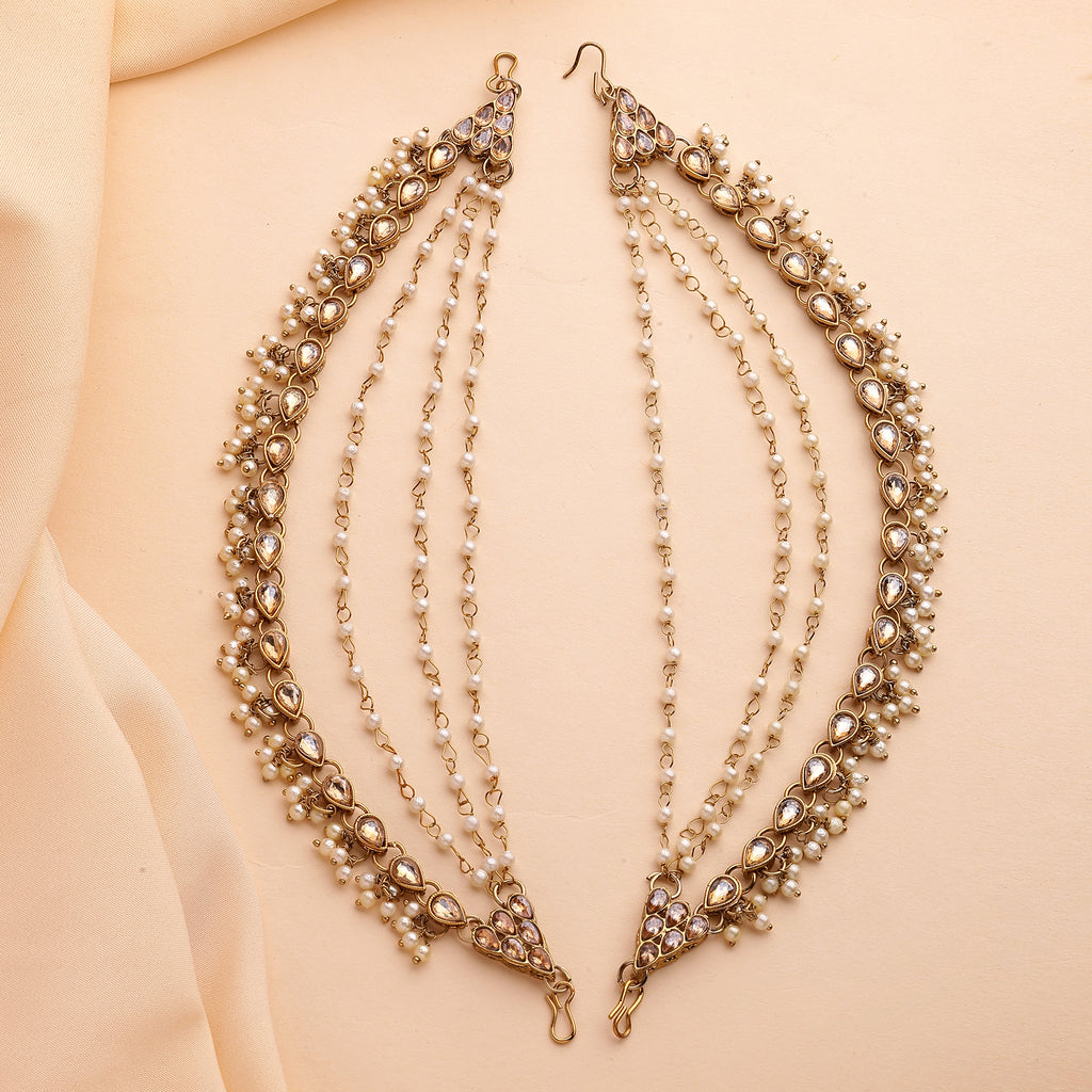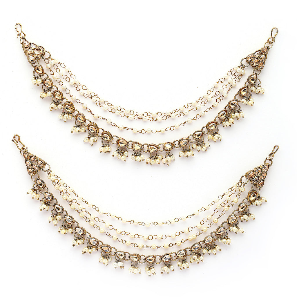 - Elegant Attachment: This gold-plated pearl studded Ear chain is a beautiful addition to your favorite earrings, adding a stylish and traditional flair. Perfect for creating a bridal look or for weddings, anniversary and festive wear.