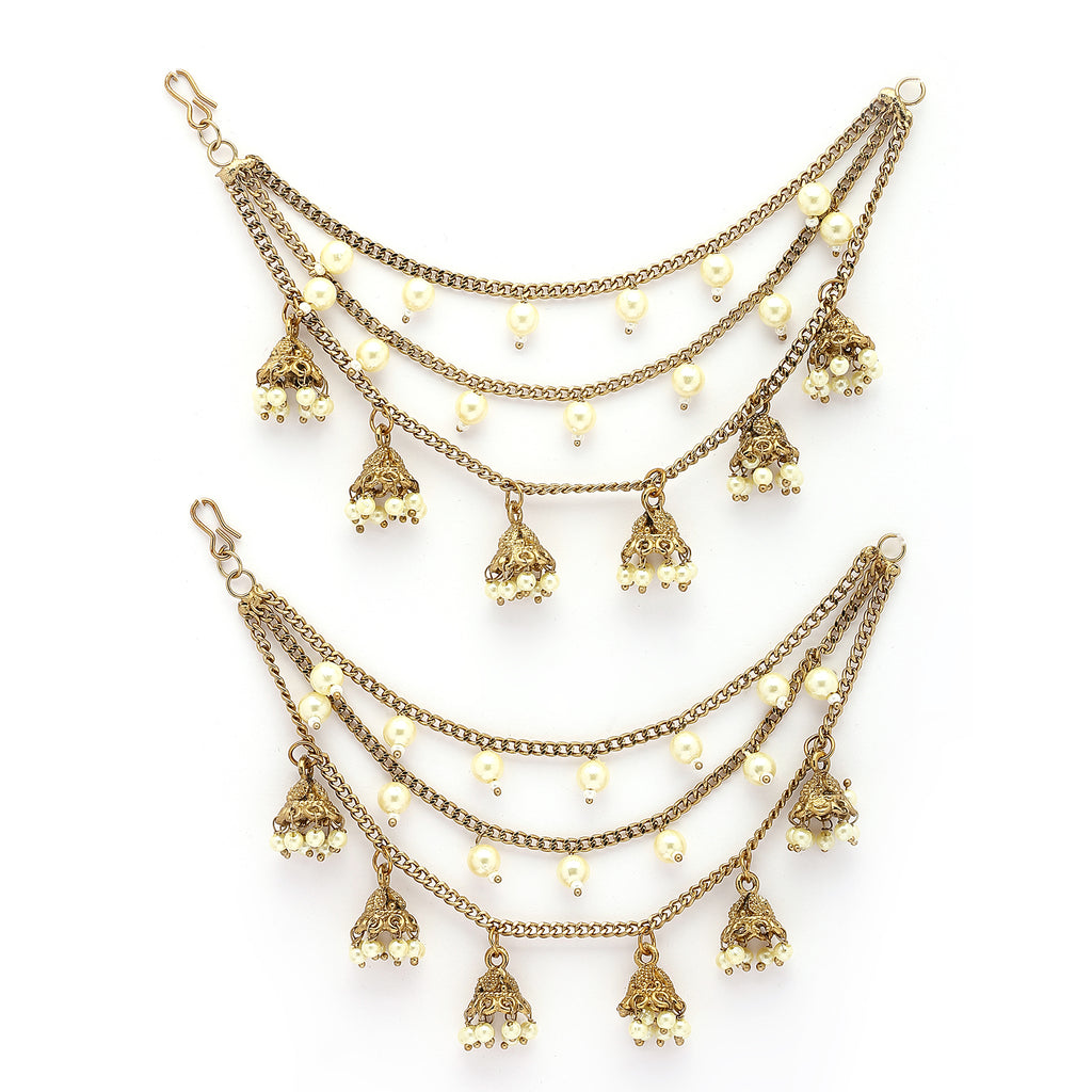 - Elegant Attachment: This gold-plated pearl studded Ear chain is a beautiful addition to your favorite earrings, adding a stylish and traditional flair. Perfect for creating a bridal look or for weddings, anniversary and festive wear.