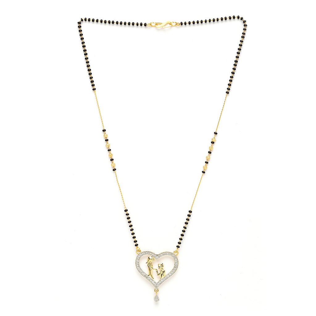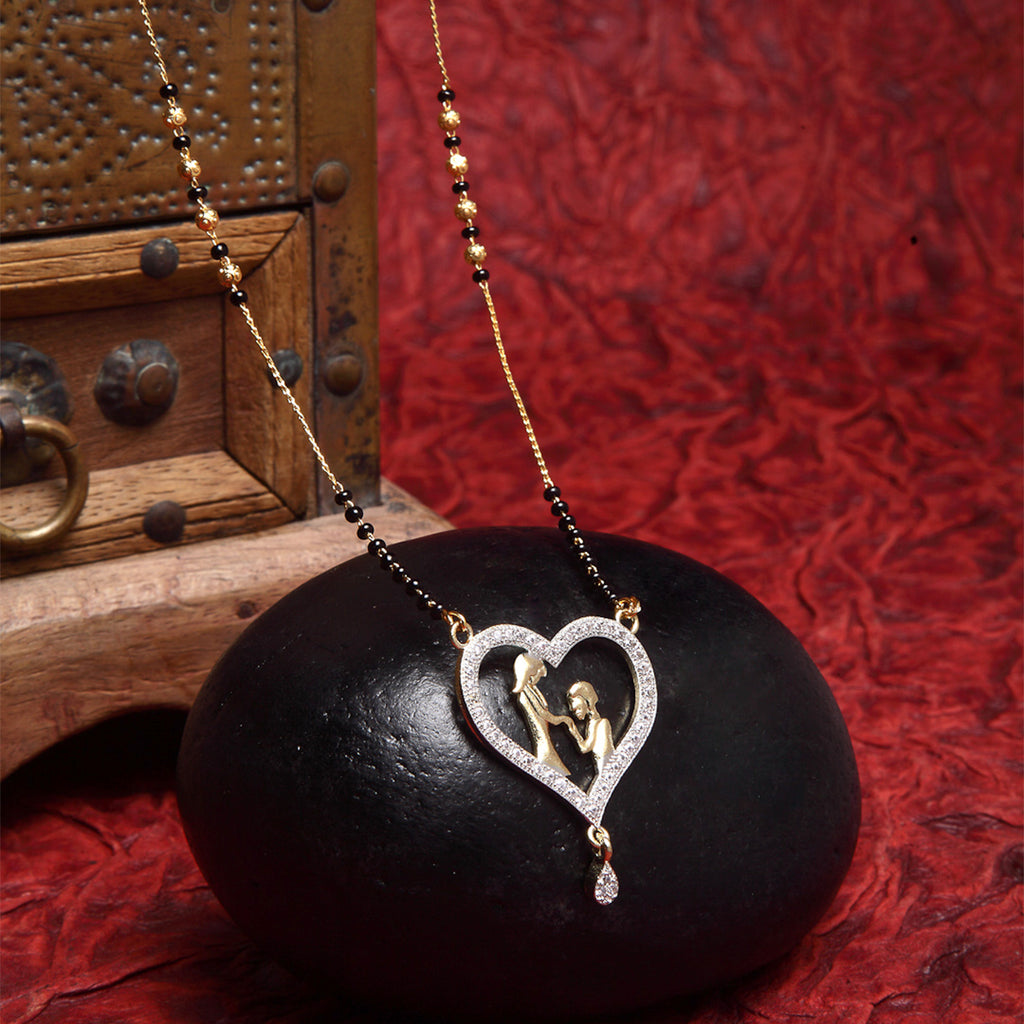 White Gold-Plated Heart Shaped American Diamond Studded Beaded Mangalsutra